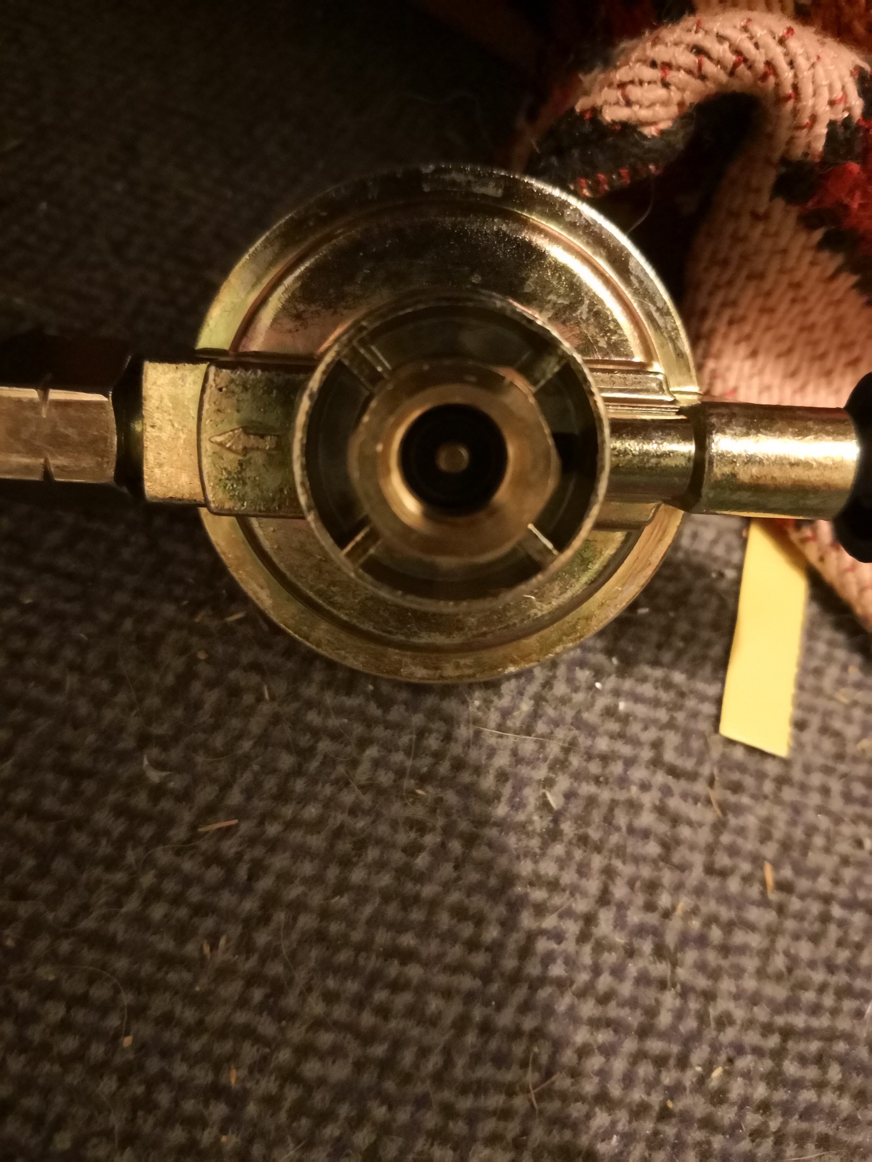 Da soll wohl eine Gaskartusche ran und der schwarze Knopf dreht auf und zu.