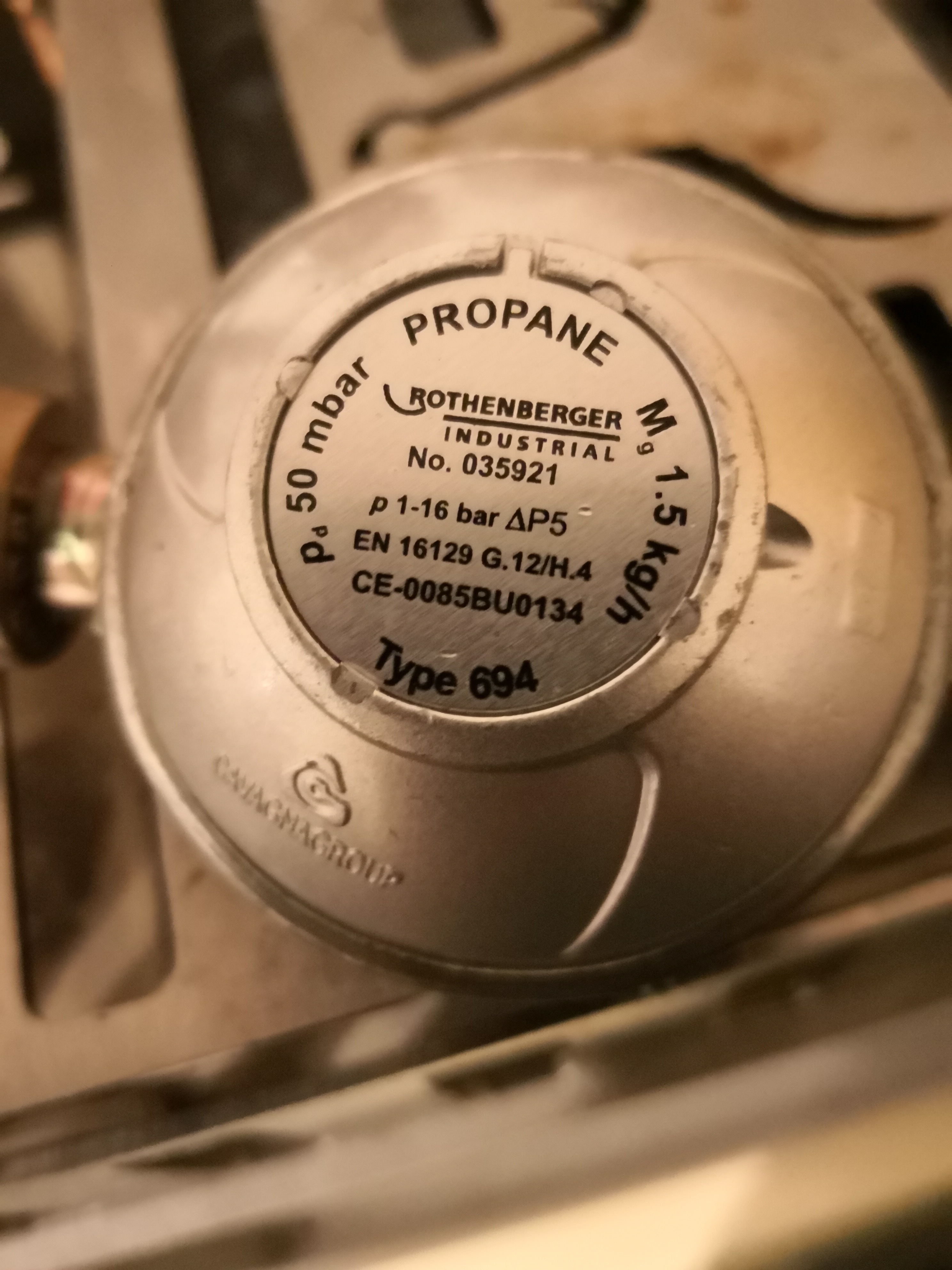 Ist doch ein 50mbar Regler, einfach den Regler abschrauben (Achtung Linksgewinde!) und ein 50mb Regler mit normalen Gasflaschenanschluss anschrauben...