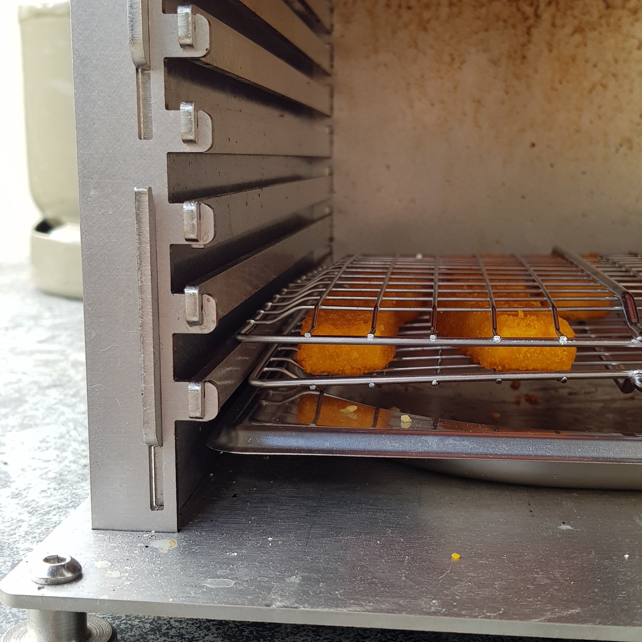 Ich bleibe aber bei Fischstäbchen bei ner GN-Schale (mittlerweile ne gelochte) - da muss ich zwar alle einzeln wenden aber durch einfaches drehen der GN-Schale kann ich dann auch leicht einen Ausgleich für die unterschiedliche Hitze (vorne/hinten) herstellen.