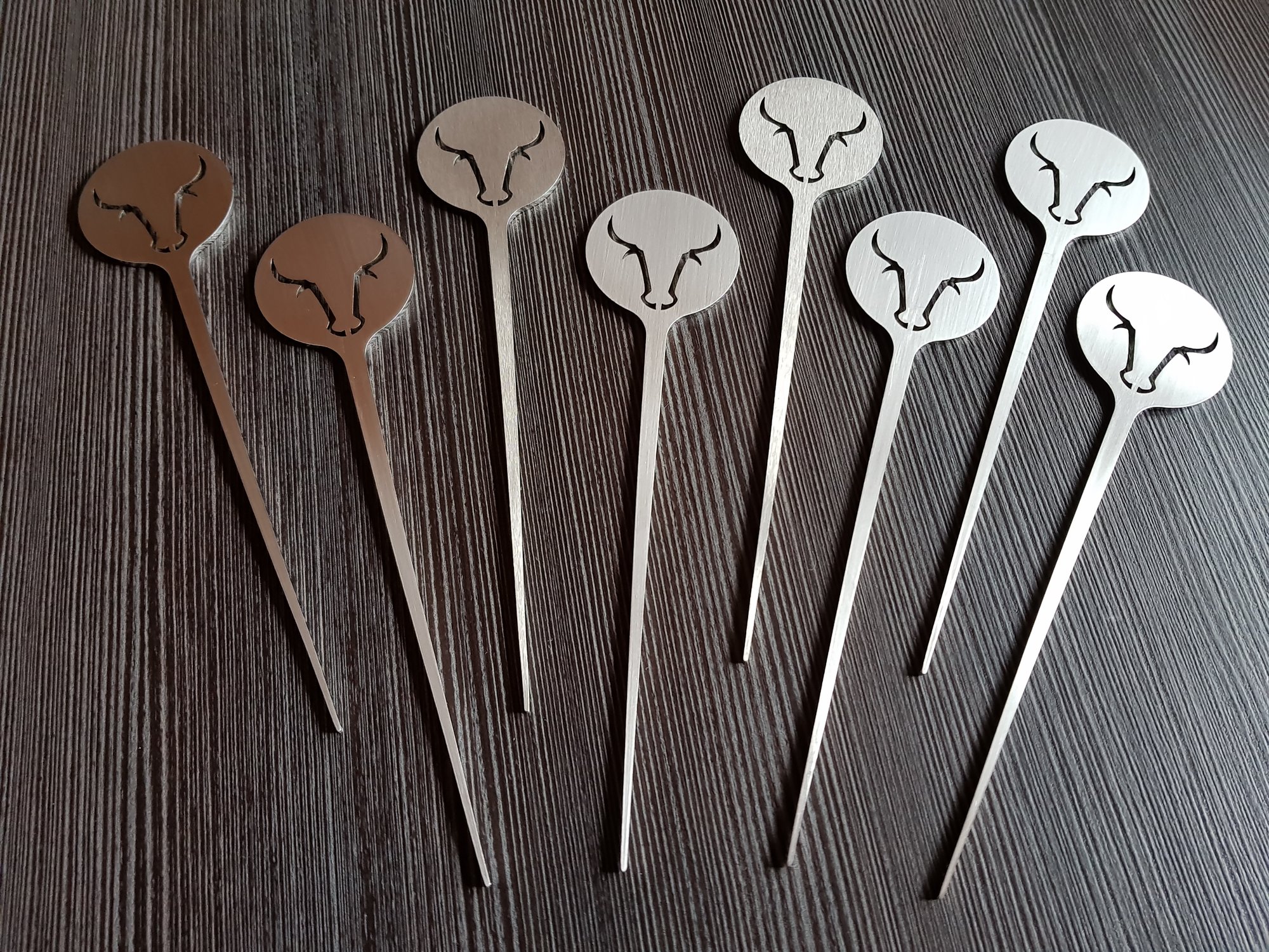 Geboten werden edle praktische Spieße, fachgerecht gelasert aus 2mm Edelstahl mit einer Spießlänge von ca. 13cm bei einer Gesamtlänge von 17 cm - geeignet für Burger, Grillspießchen, Fingerfood, etc. zum günstigen Preis. Diese sind zudem stilvoll, umweltfreundlich und spülmaschinengeeignet. Kurz - eine Bereicherung für jede Grillparty.