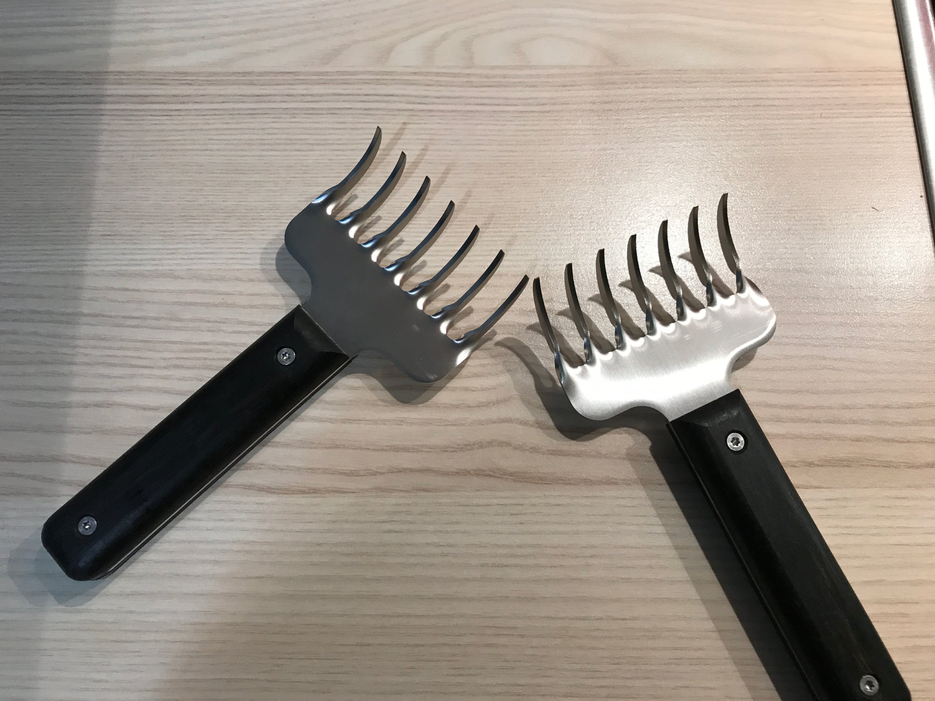 Ja, so in etwa habe ich das auch angedacht, aber worin hält denn die Schraube? Bei Deinen Krallen kann doch eigentlich nur ein Gewinde im Edelstahl sein, im Rostheber ist aber nur ein großer Schlitz. Ich hatte überlegt, eine Seite eine Schraube und auf der anderen Seite eine Mutter zu versenken, fasst sich aber bestimmt nicht so gut an.