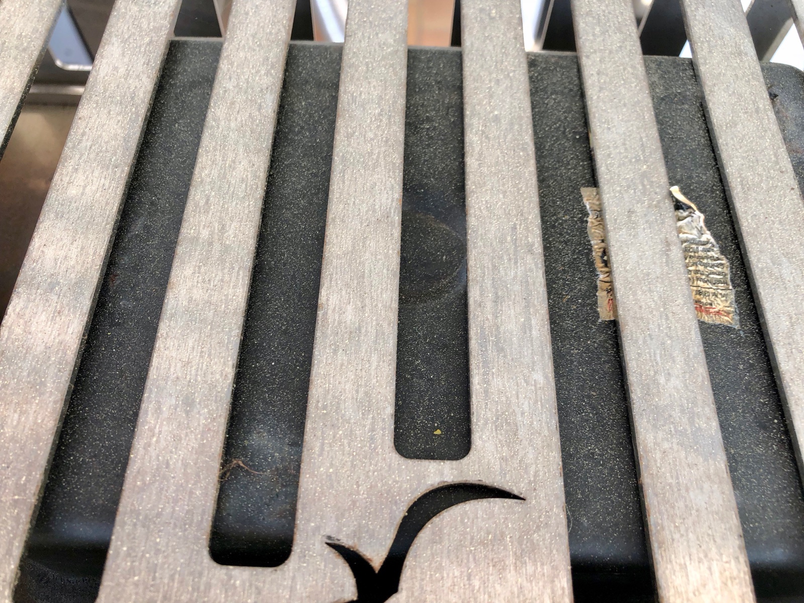 Selbst wenn sich die klebeverbindung nach dem ersten mal anheizen löst, die Klemmkraft vom Brenner auf die Platte wird die Schnur schon halten