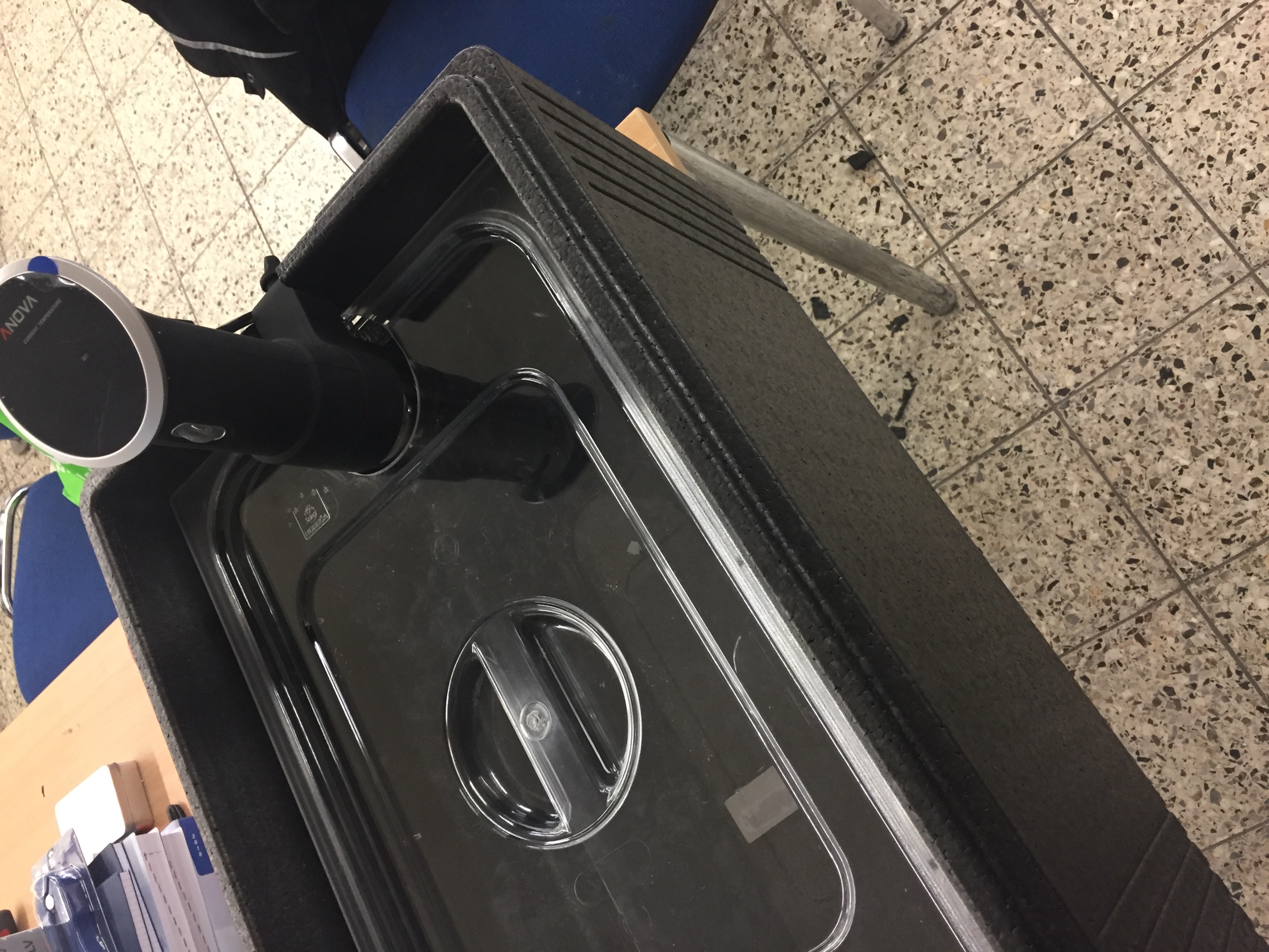 Weiterer Vorteil: Der Sous Vide-Stick und die Folienbeutel passen da auch mit rein. Ist alles sauber verstaut und zusammen.