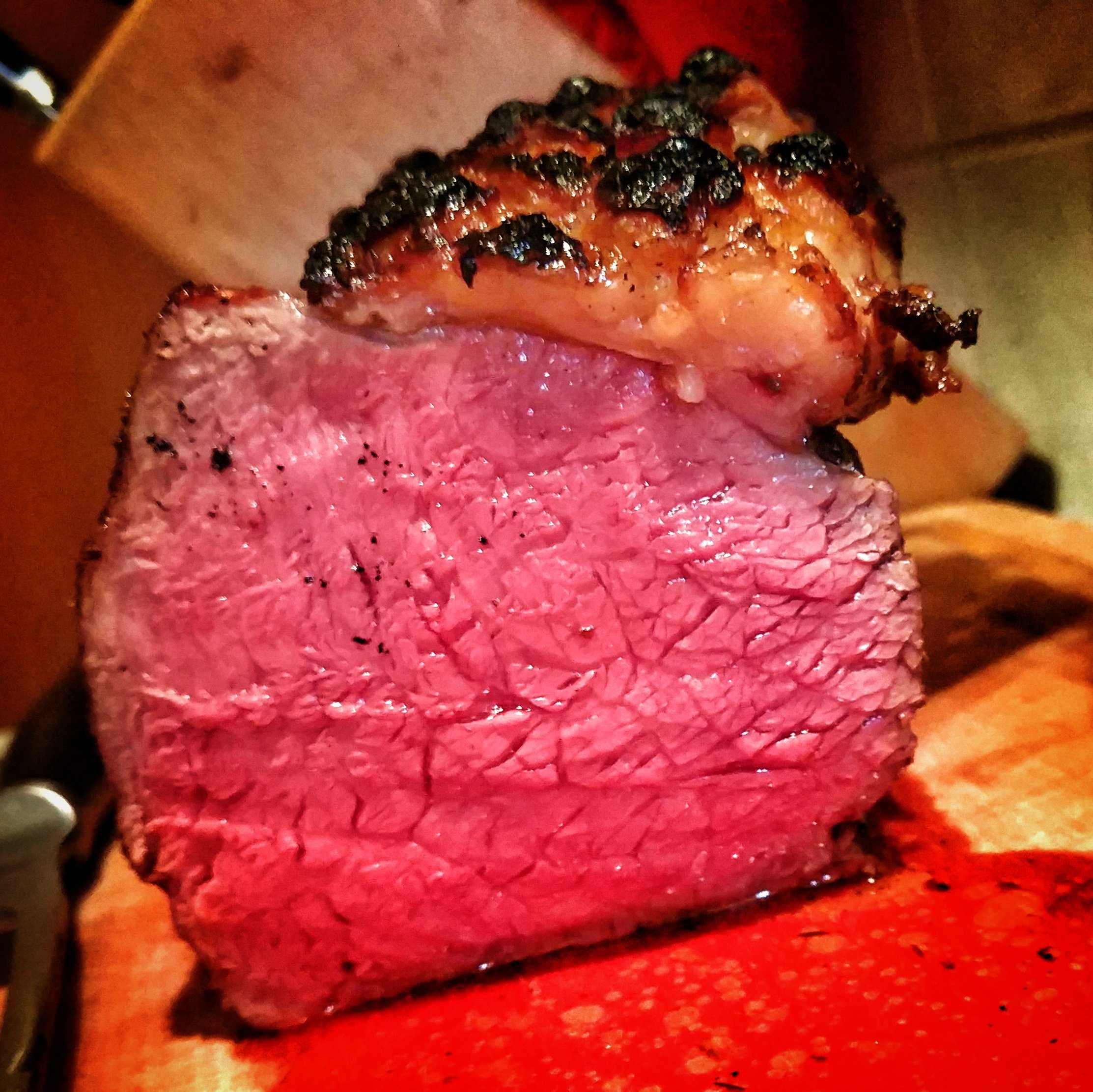 6. Anschneiden und geniessen. Falls Weicheier dabei sind, die das Tier gerne 2x töten ("well done") -> dann kommt eine einzelne Scheibe nochmal kurz in den OHG