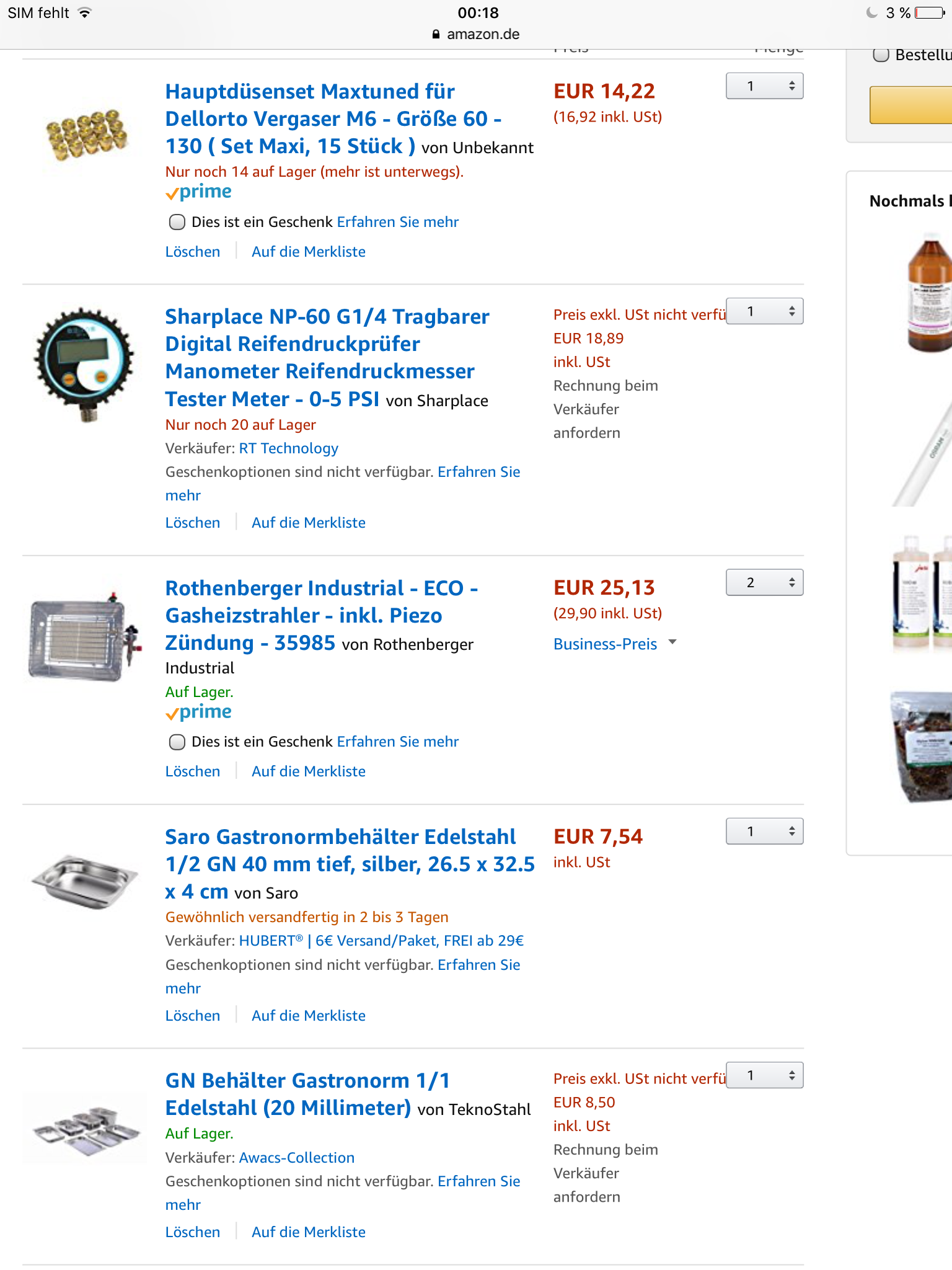 Ich tu mich Riesen schwer die Liste der noch benötigten Teile vom twin mit den Düsen,druckminderer,manometer,schlauchbruchsicherung,....Anschlüsse,Verbindern ....zusammen zu kriegen.