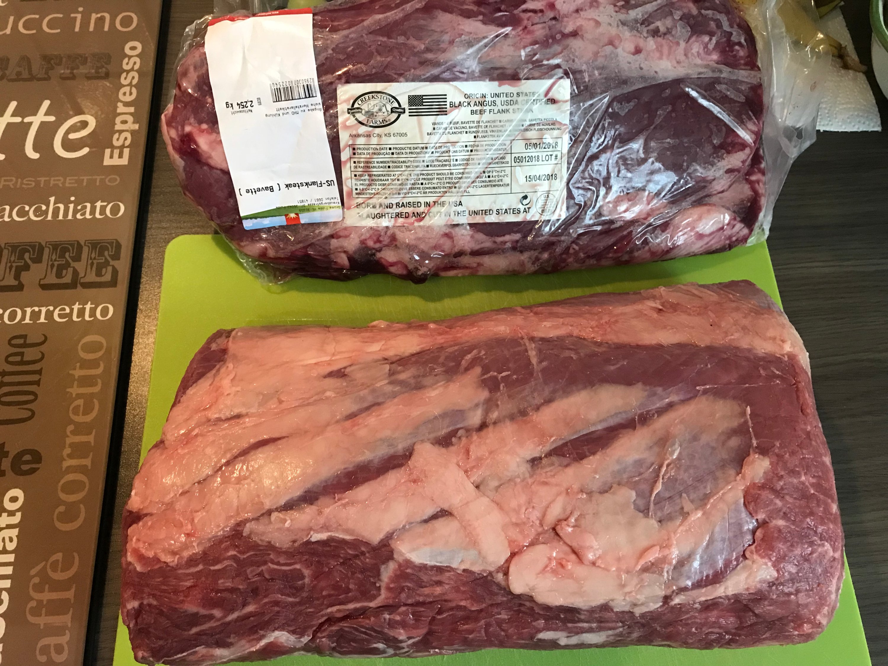 So hier hab ich mal ein schönes 4KG DryAge-Entrecote portioniert darüber liegen noch zwei US-Flanksteak