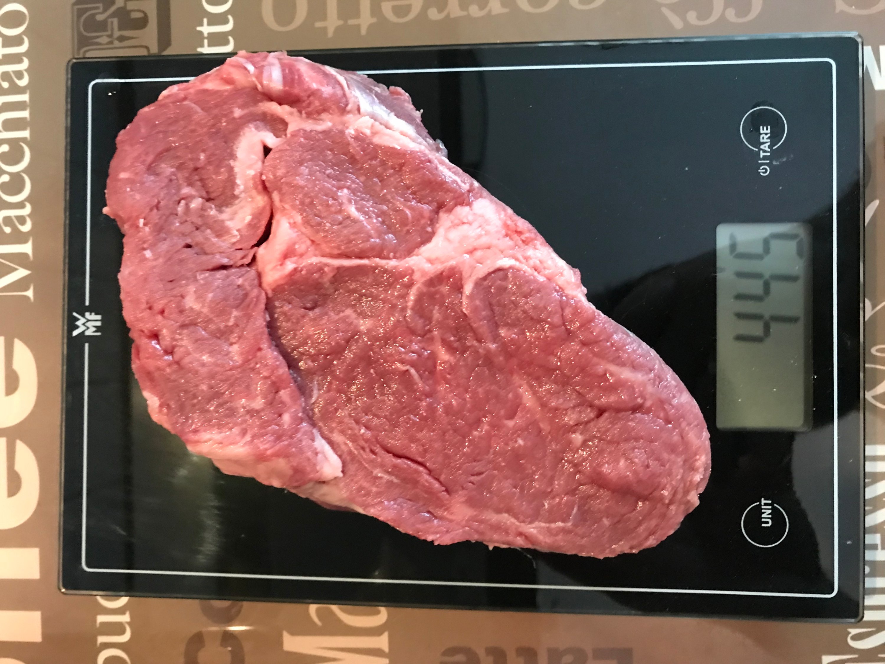 Ja, "dem Stück" denn ich bereite es tatsächlich am Stück zu - ist ein Experiment weil ich keine Lust hatte aus dem Hüftfilet mehrere kleine Steaks zu schneiden. Das habe ich so noch nie gemacht und bin mal gespannt wie es wird.