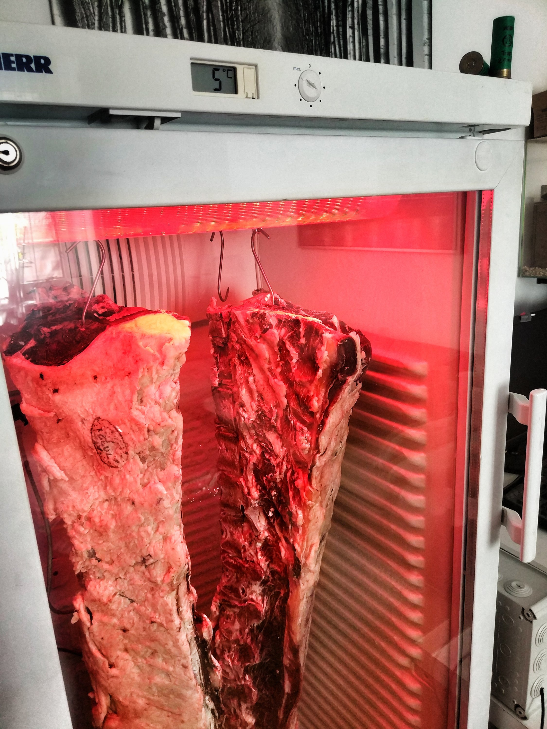 Letzteres ist eine Behauptung von mir aufgrund der Literatur - das werde ich nachmessen. Die Theorie: Luftfeuchte hoch halten (nicht über 85% wegen Schimmelgefahr) senkt den Wasserverlust ergo den wirtschaftlichen Verlust beim Verkauf. Allerdings wurde an anderer Stelle schon nachgewiesen, dass das "eingesparte Wasser" sich dann beim Braten in der Pfanne verabschiedet -> nach dem Grillen sind die Referenzstücke wieder gleich schwer.