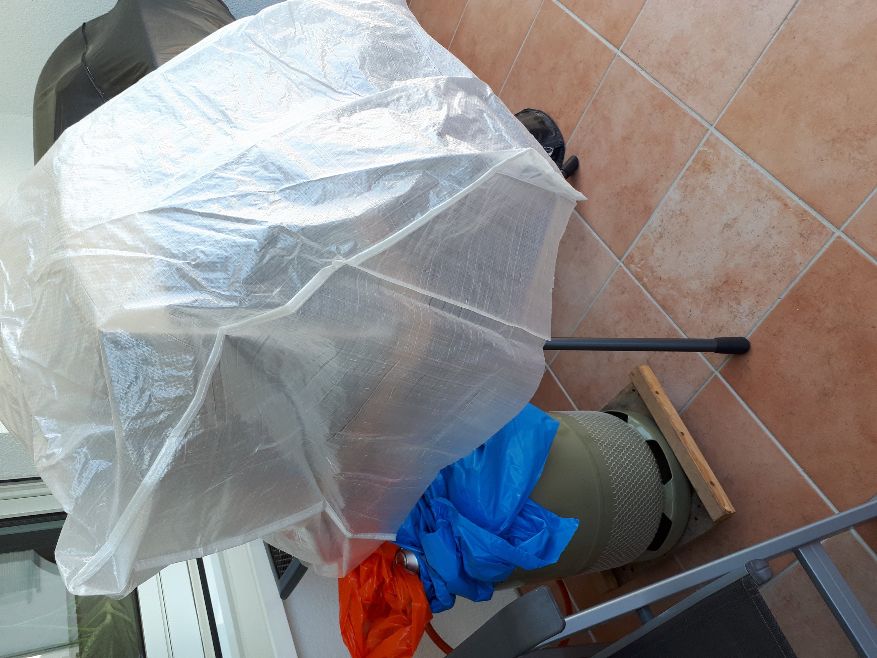 Die blauen Ikea-Tüten passen auch perfekt über den Twin. Sicher nicht absolut wasserdicht, aber solange der OHG nicht im Monsun steht ists ausreichend.