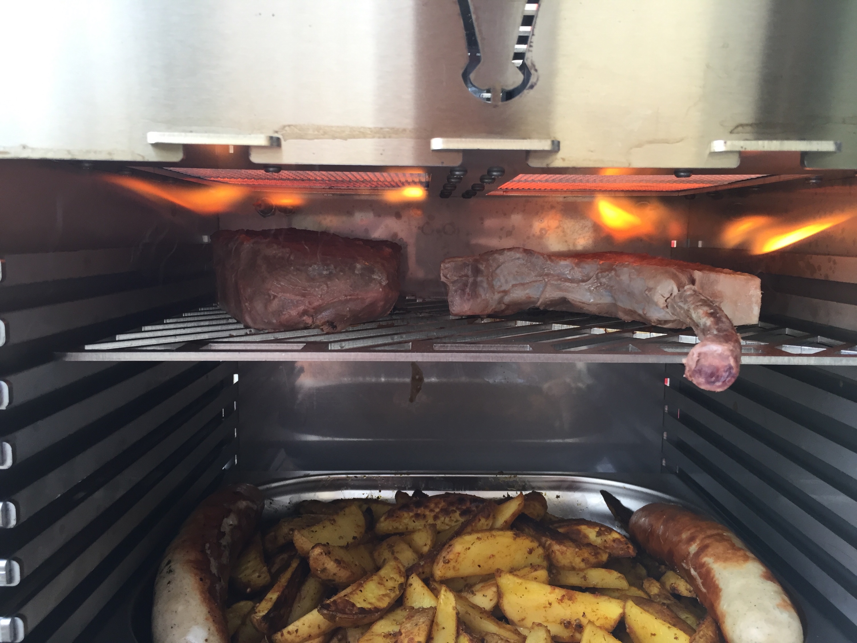 Um Kruste drauf zu bringen immer möglichst nah an die Keramik, sonst kommen die 850 Grad da oben ja auch nicht Ansatzweise ans Fleisch. Das konterkariert das OHG-Prinzip.