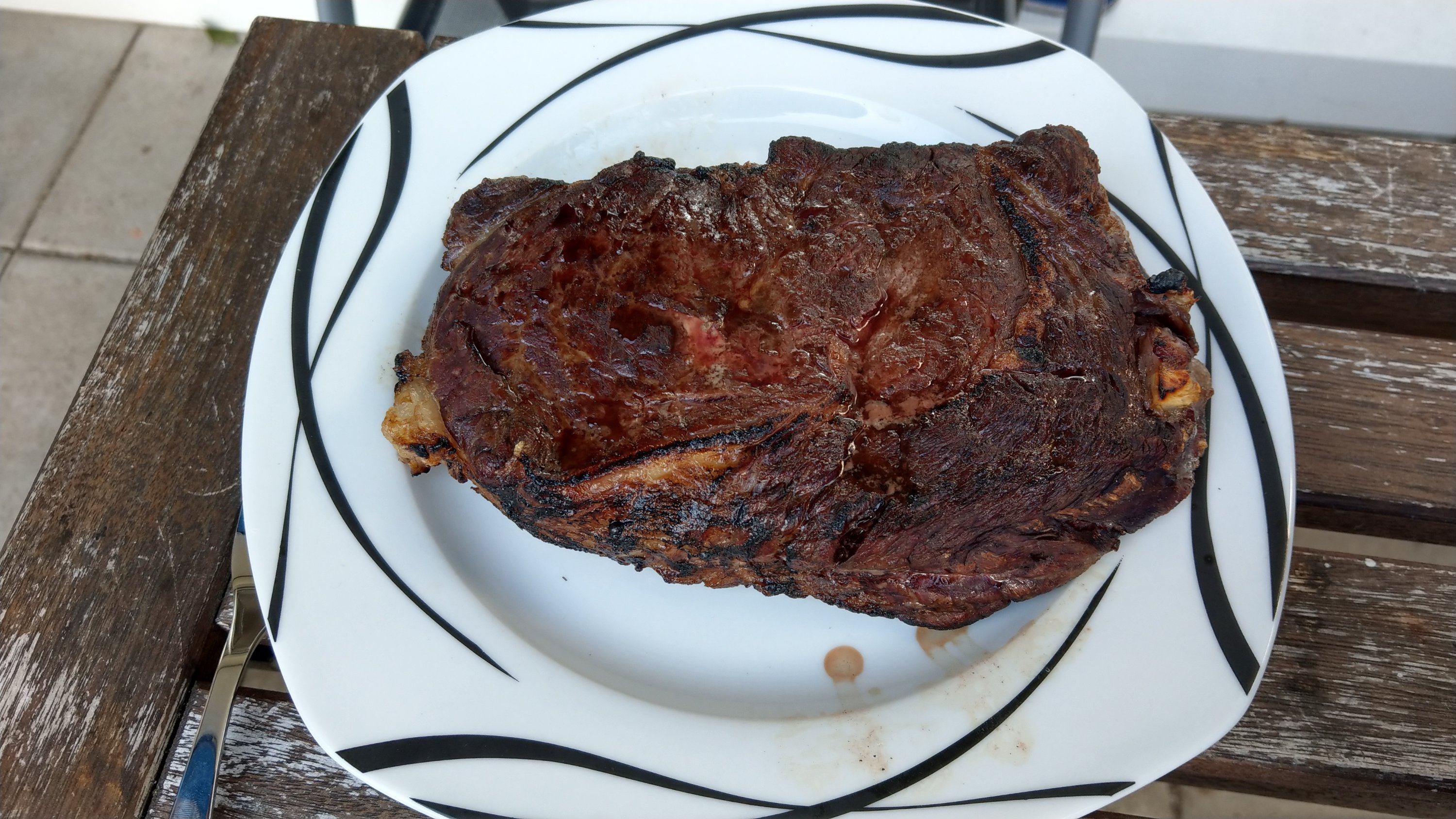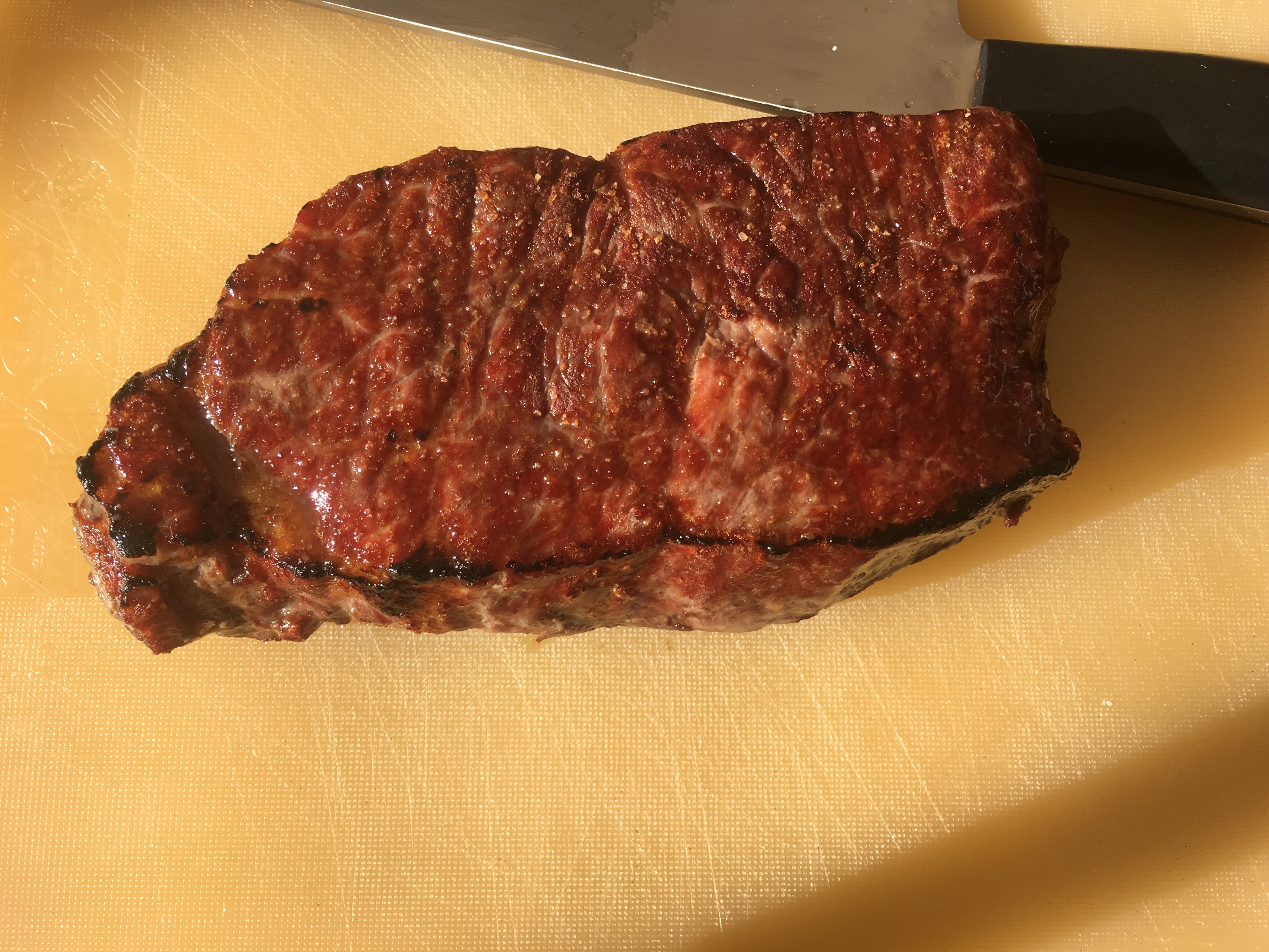 Ich wollte euch noch mein gefrorenes Ribeye zeigen. Gefroren auf den OHg, ca 60-80sekunden pro Seite. Anschliessend 1,5 Stunden in den Backofen bis 53 Grad. Optik und Kruste war klasse, leider war die Fleischqualität nicht so toll.