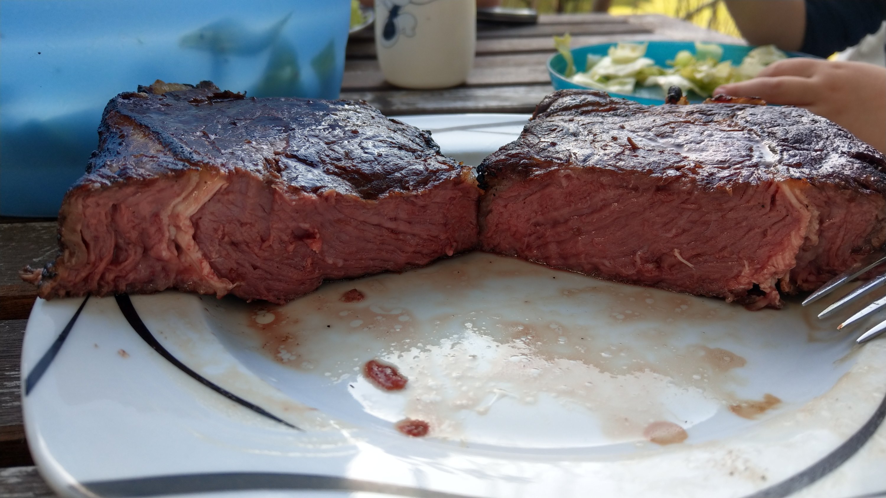 Wovon ich auch nichts halte ist Steaks vor dem grillen auf Zimmertemper zu bringen. Das halte ich für bakteriologisch nicht so doll und da ich meine Steaks ja nicht durchbrate ist das sicher auch sinnvoller so.
