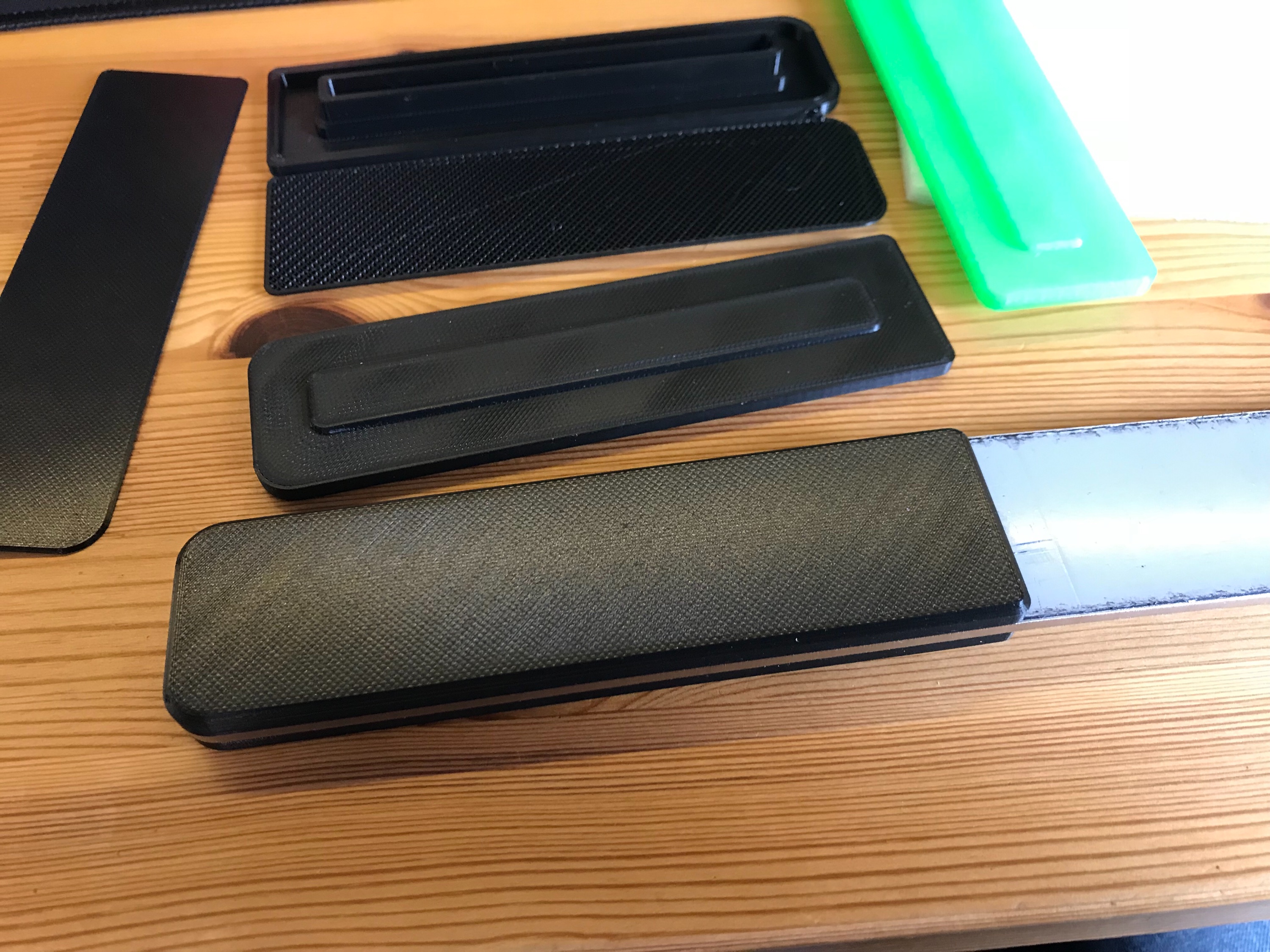 So und nun wieder an Rechner und auf jeder Seite zwei Magnete einzeichnen. Dann brauchst du den blöden kleber nicht und zum reinigen kannst du den Griff abmachen ;-)