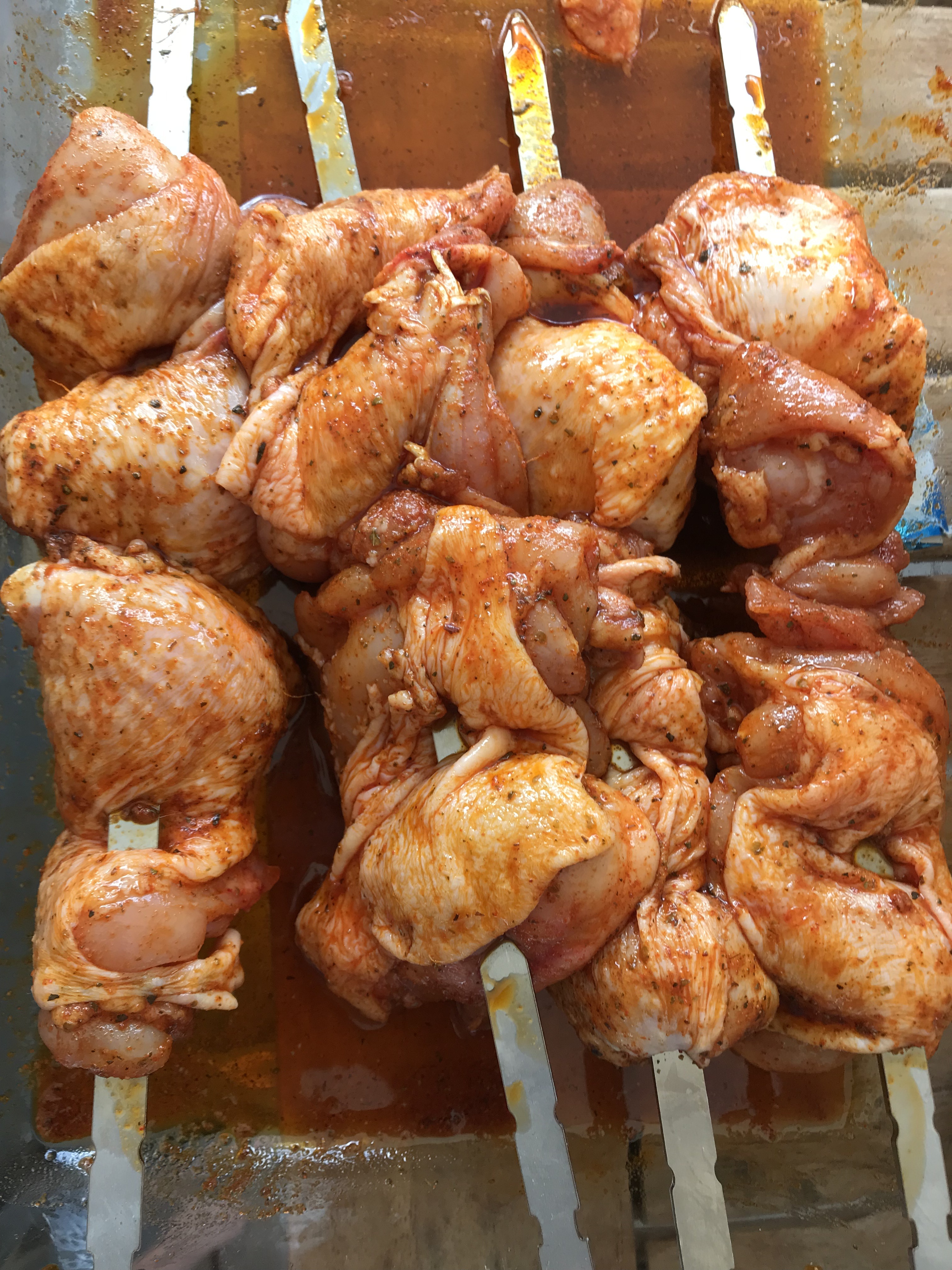 Also die Spießmaschine ist der Knaller und für mich tun Sich da ganz neue Möglichkeiten auf. Heute mal Hähnchenschenkel ohne Knochen gespießt und für 25 Minuten bei kleinster Stufe in das Höllengerät: