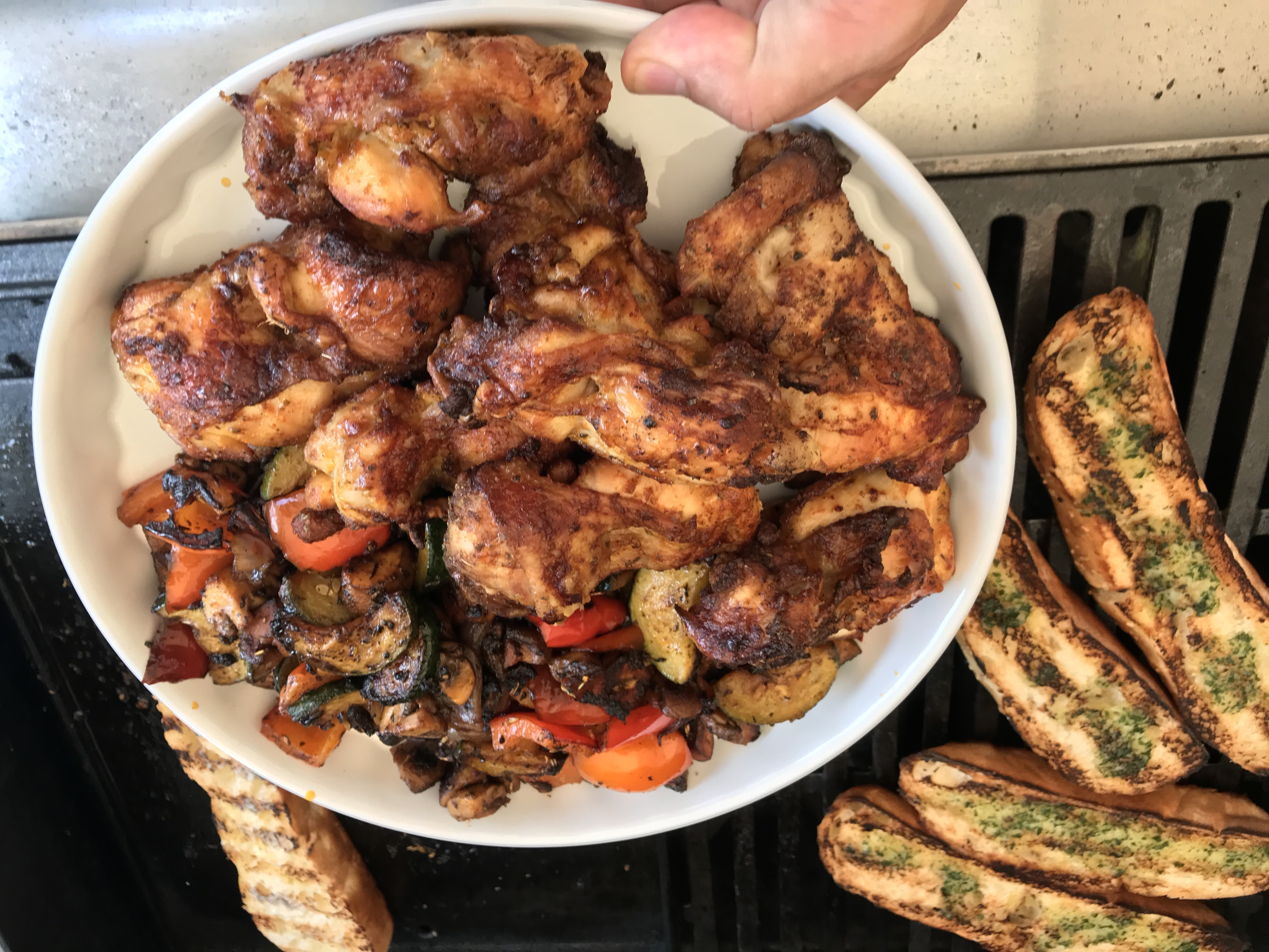 Schräglage für gleichmäßiges Grillen auch richtig eingestellt diesmal.