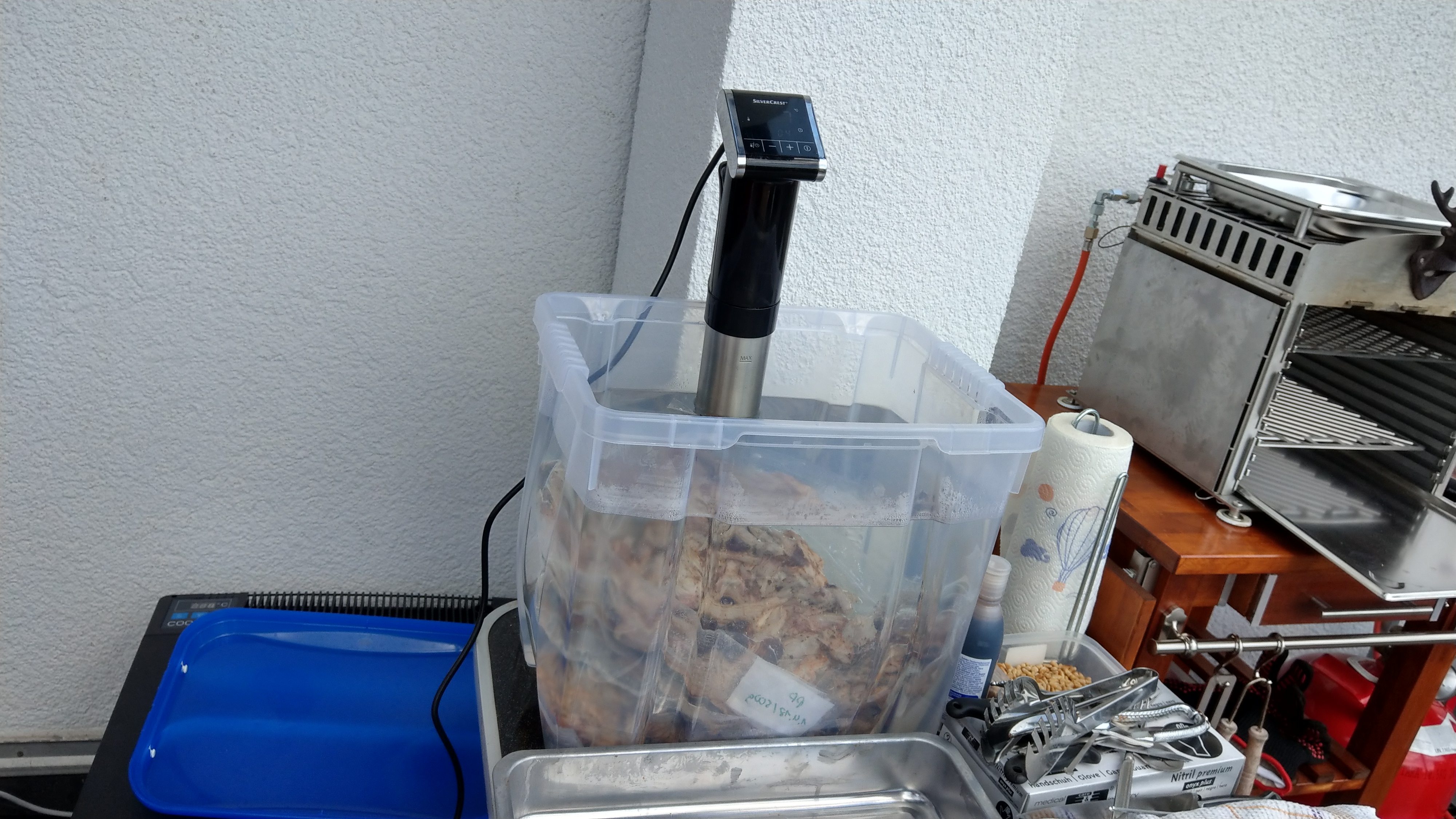 Ich hatte es übrigens gute vier Stunden bei 52°C in der Badewanne. Die Dauer war nicht unbedingt gewollt, ging aber aufgrund eines Termins nicht anders. War aber OK so, ist nicht zu weich gewesen. Ich würde es allerdings das nächste Mal nicht so hoch temperieren. Die 55°C von @g0t0 fände ich da schon sehr hoch.