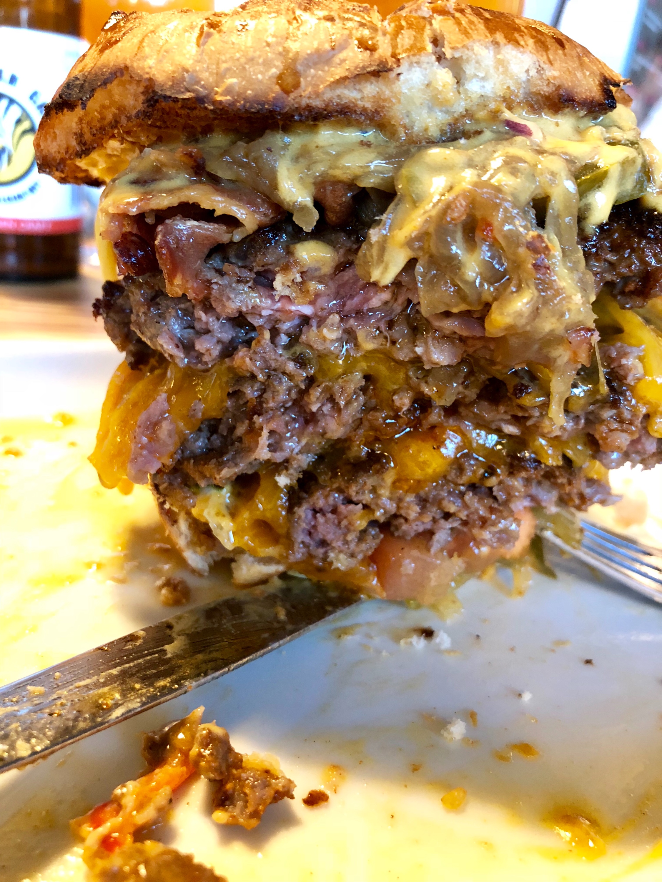 Auch wenn es beeindruckend aussieht, aber für mich muss ein Burger noch mit zwei Händen essbar sein. Wenn ich da mit Messer und Gabel ran muss, macht das doch keinen Spaß mehr :D