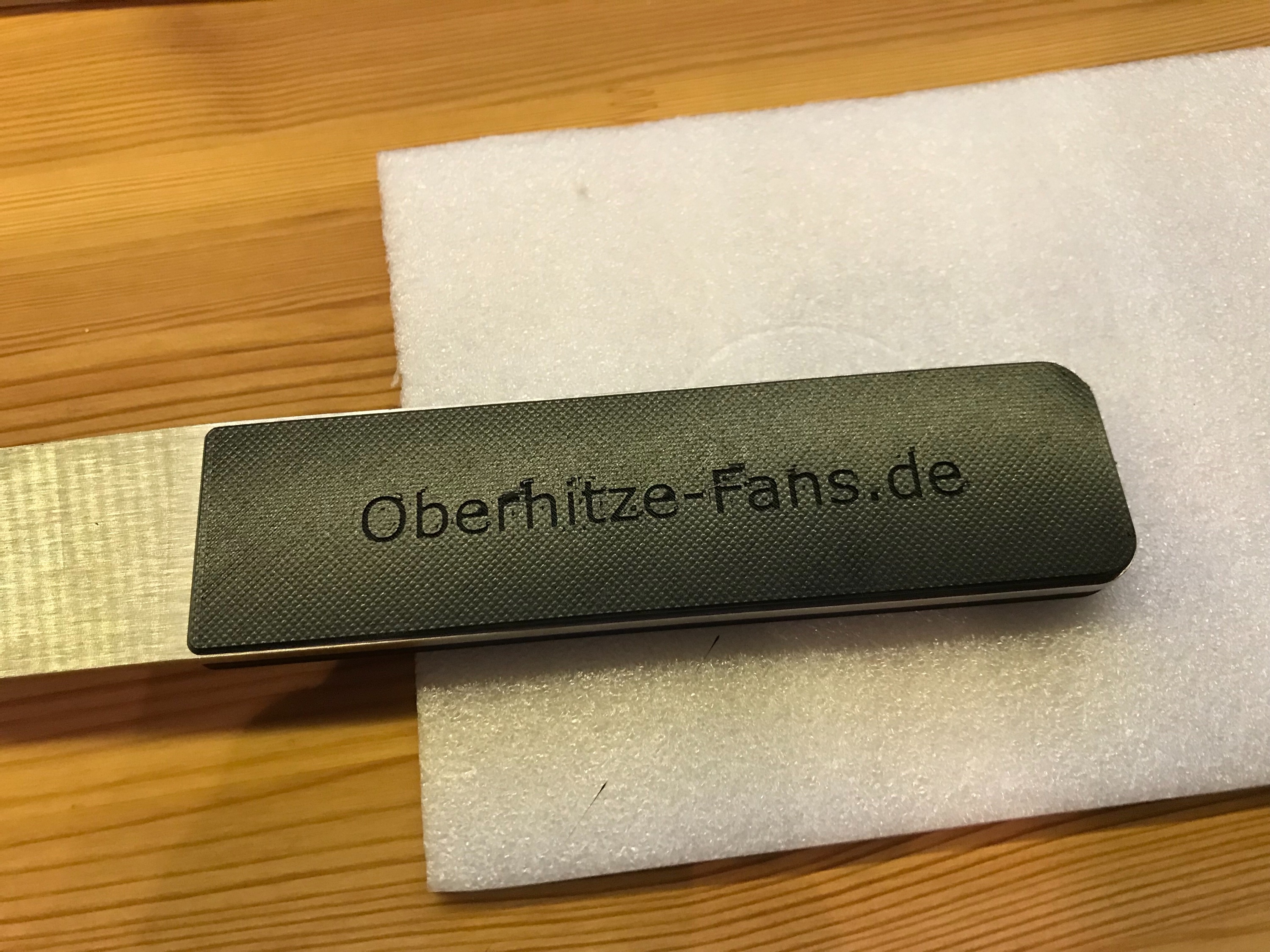 Oberteil mit Schrift und Logo, passend für 10x3mm Magnete, wenn Holz, dann kann der Mittelbereich "voll" bleiben