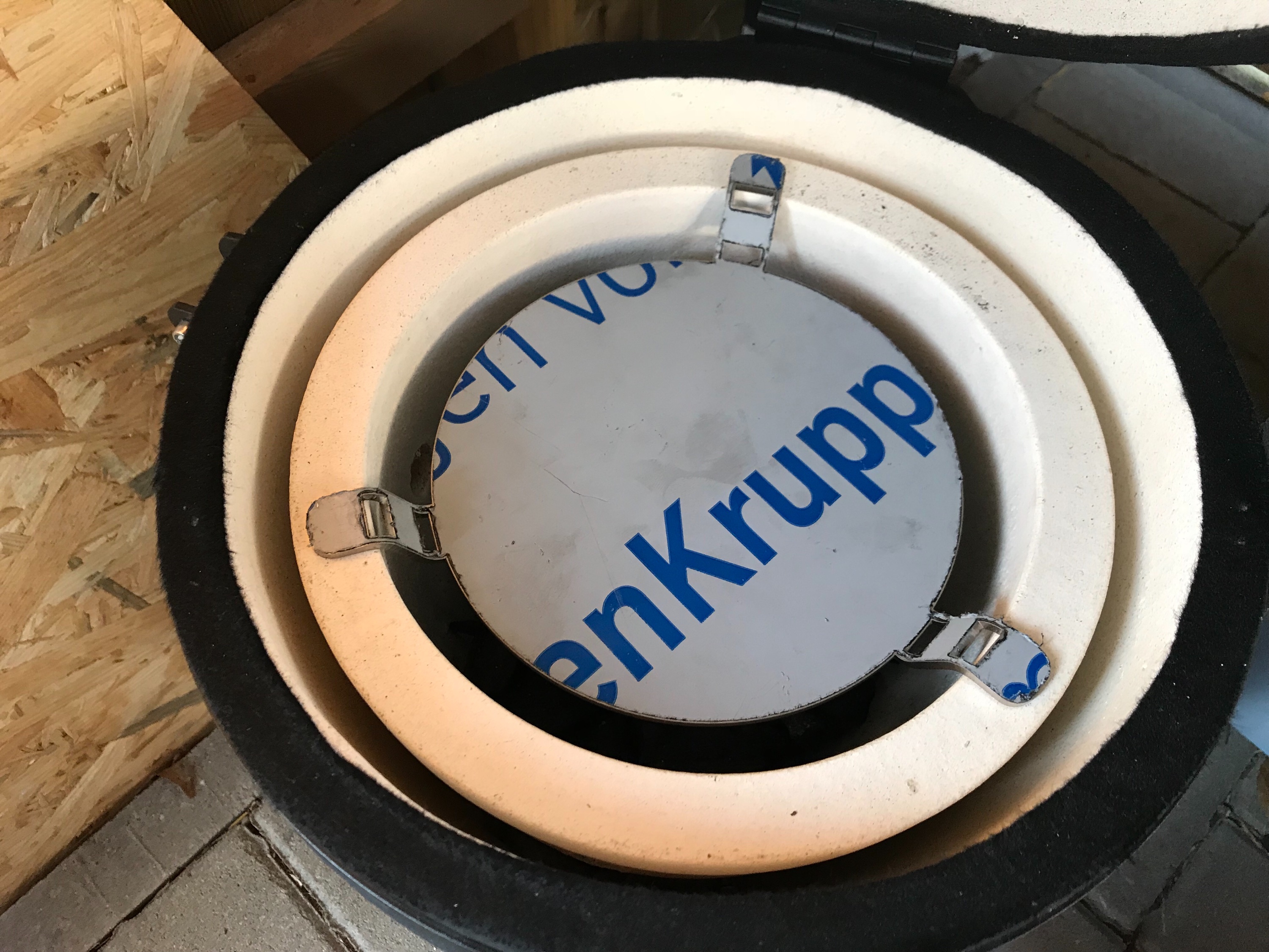 Nach 5 Wochen Wartens in der Garage wegen Zeitmangels habe ich heute das Action-Ei aus seinem Karton befreit und endmontiert. Danach aus einem Gitter (von einem Rothenberger Brenner) einen Deflektorhalter gebastelt . Dann mit 2 Händen voll Profagus Kohle das kleine Ding ausgeheizt. Wahnsinn wie das kleine Ei mit so wenig Kohle abgeht :shock: