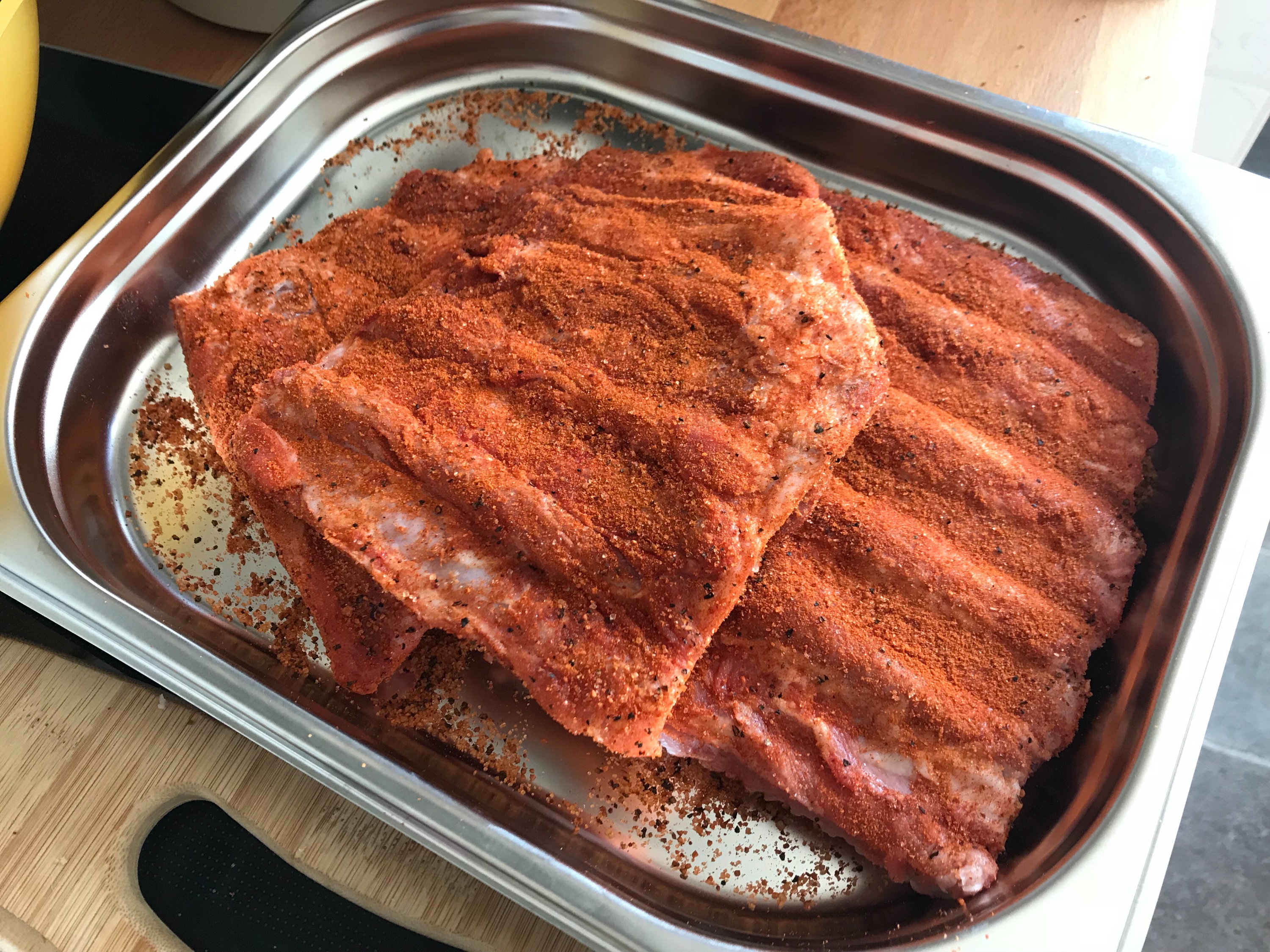 Morgen sollen Rippchen gegrillt werden, diese heute mit Magic Dust gerubbt und vakuumiert.