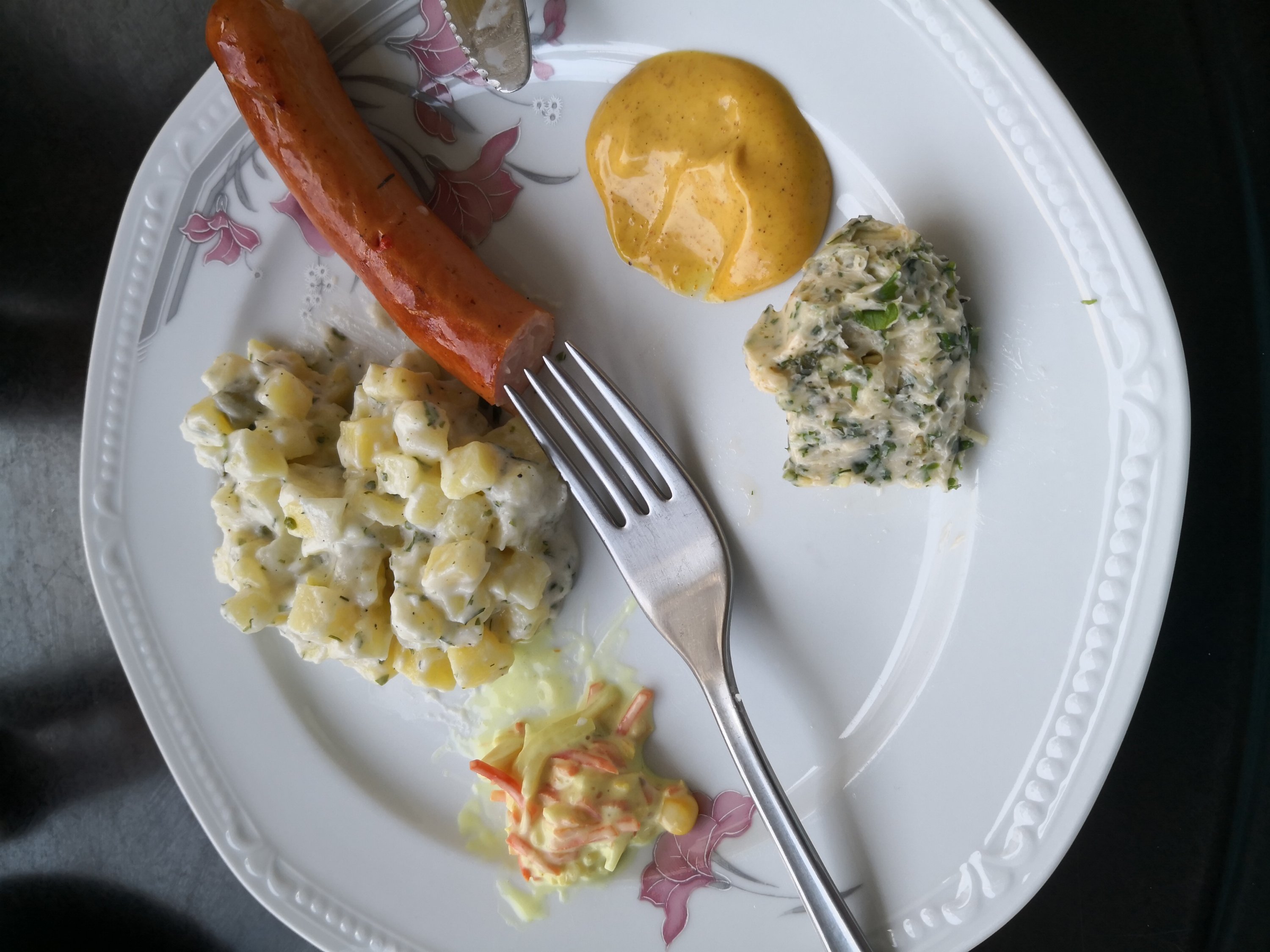 Dazu lecker Salätchen und selbst gemachte Kräuterbutter, war schön.