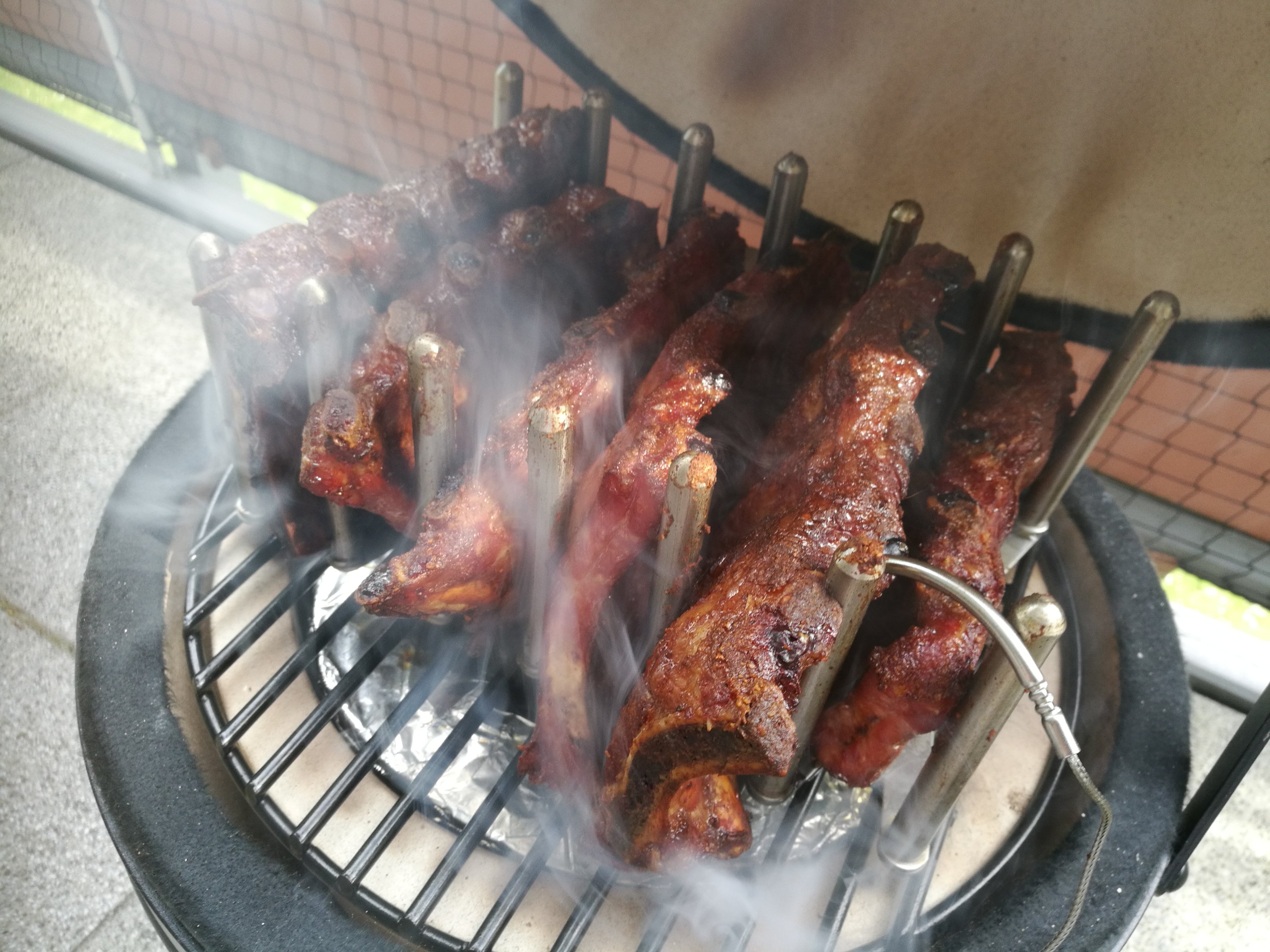 Marty McFly hat geschrieben: So 29. Apr 2018, 18:38 Zwischenstand nach ca. 2h und eigentlich zuviel Hitze... 160 statt 120grad, SpeedbackRibs :lol: