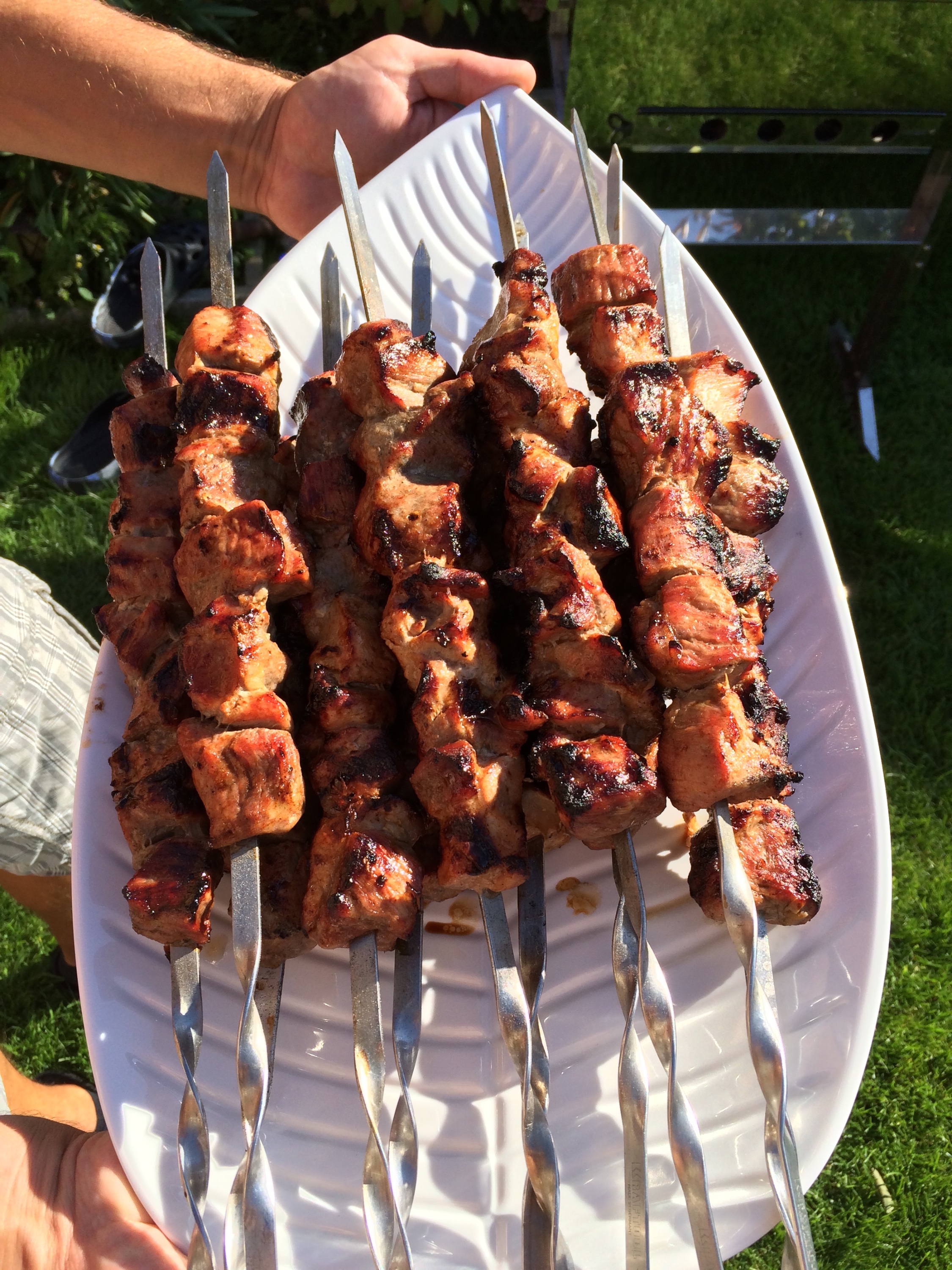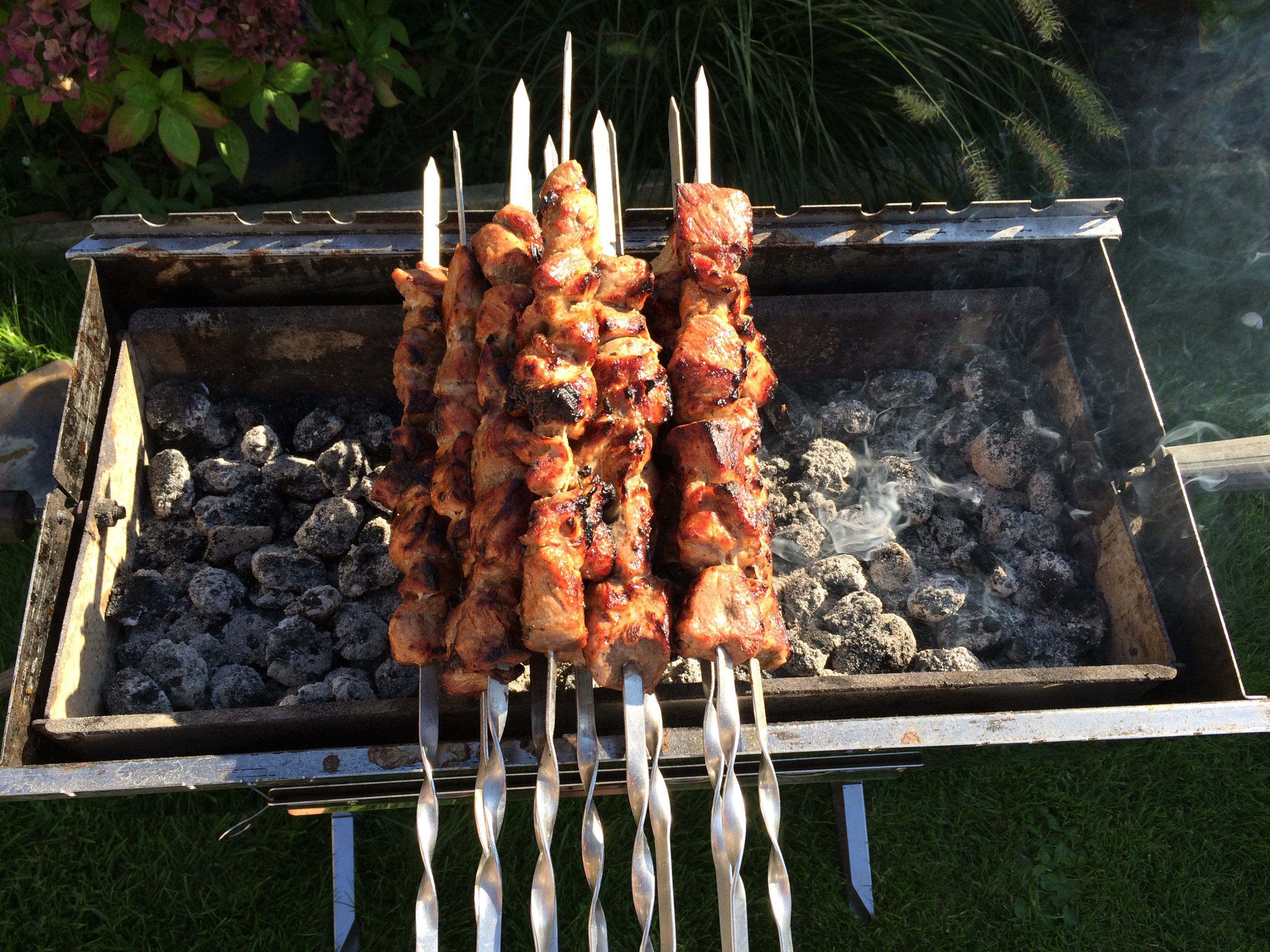 Heute mal eine andere Art von Schaschlik probiert. Probe sitzen in der Küche.