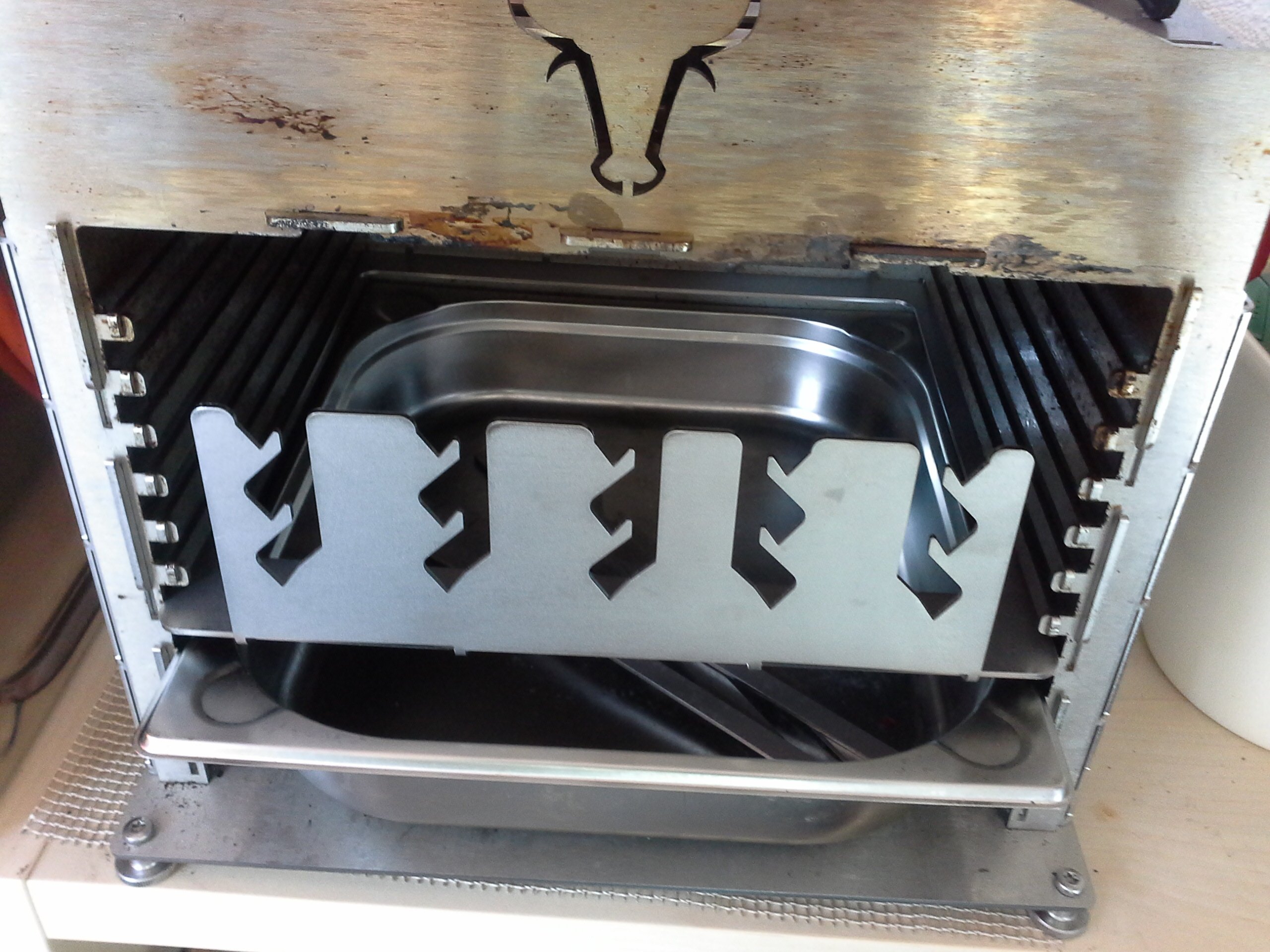 Bis ich nun den Entwurf in die Realität umgesetzt habe, hat es doch etwas länger gedauert. Die Idee ist für einen Single, um damit drei Spieße gleichzeitig grillen zu können.