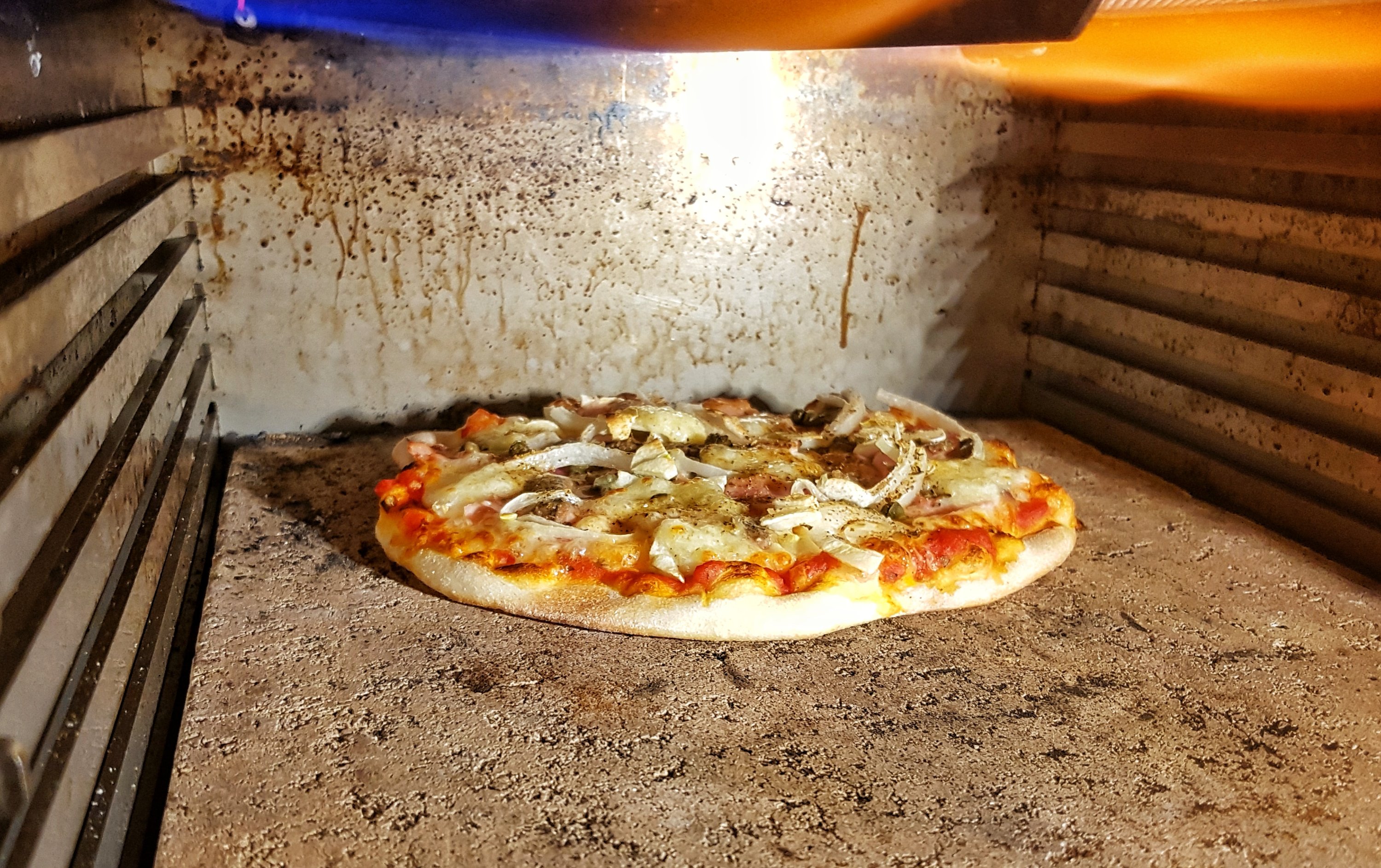 Pizzastein für 10min oben im OHG bei voller Leistung aufheizen lassen. Dann auf mittlere Höhe gesetzt und Brenner runtergedreht. Pizzastein hatte so um die 380° und hat die Temperatur auch gut gehalten.