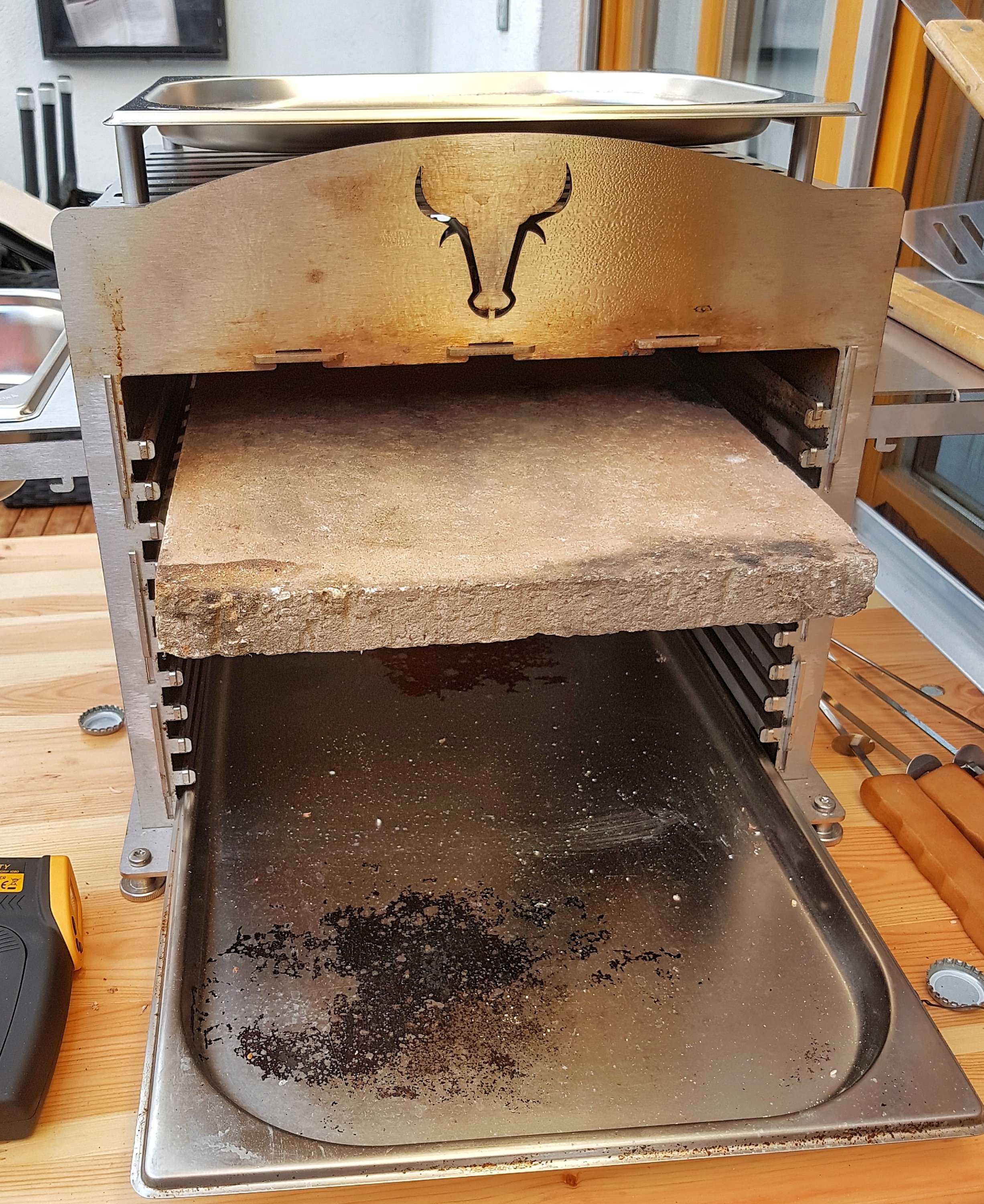 Zum Glück passen meine alten Pizzasteine haargenau in den Twin und stehen nur vorne etwas raus. Hier also nochmal meine ersten Ergebisse: