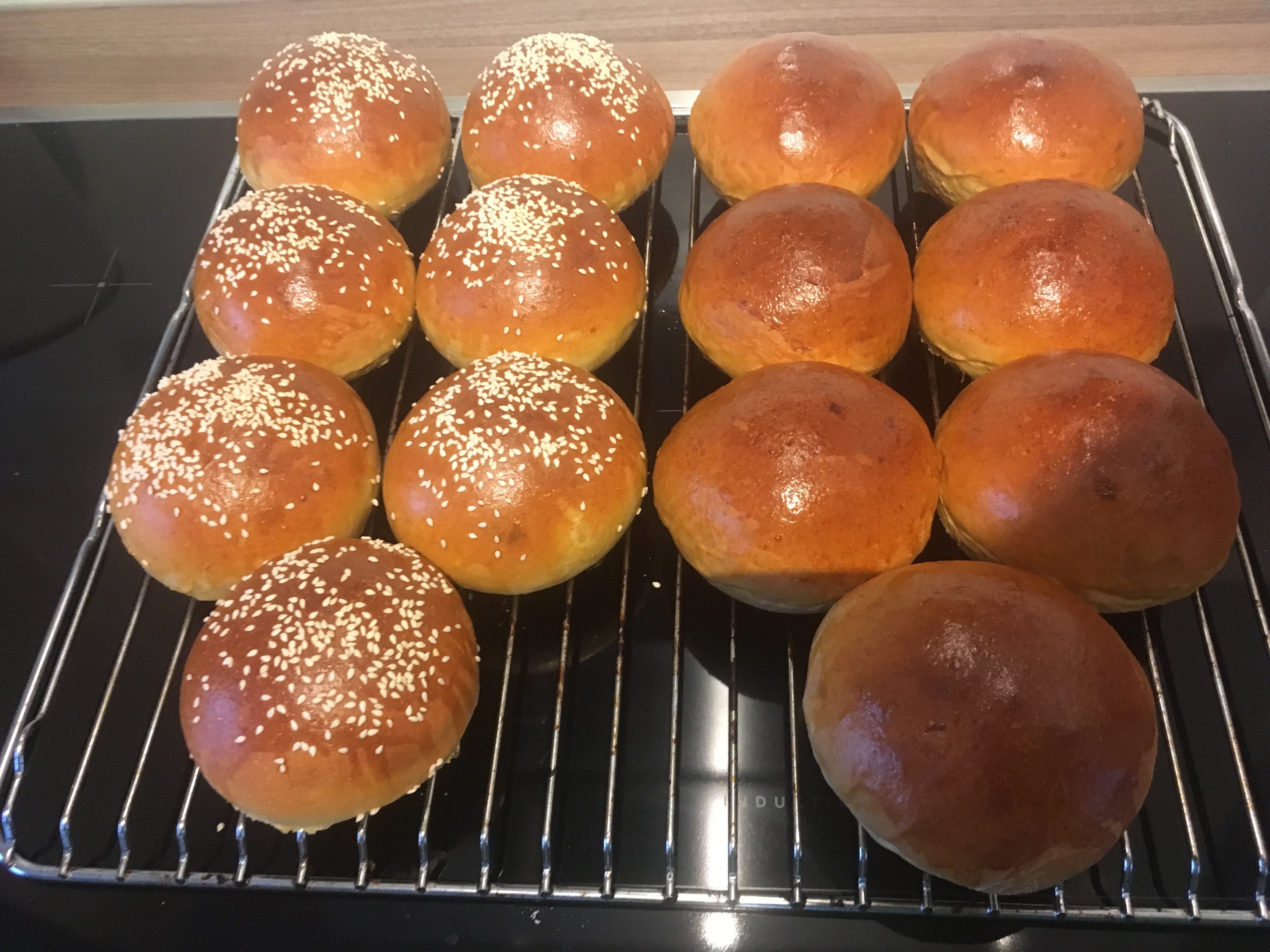 Sodele, hier mein Ansatz für die Burgerbrötchen wie oben gesehen: