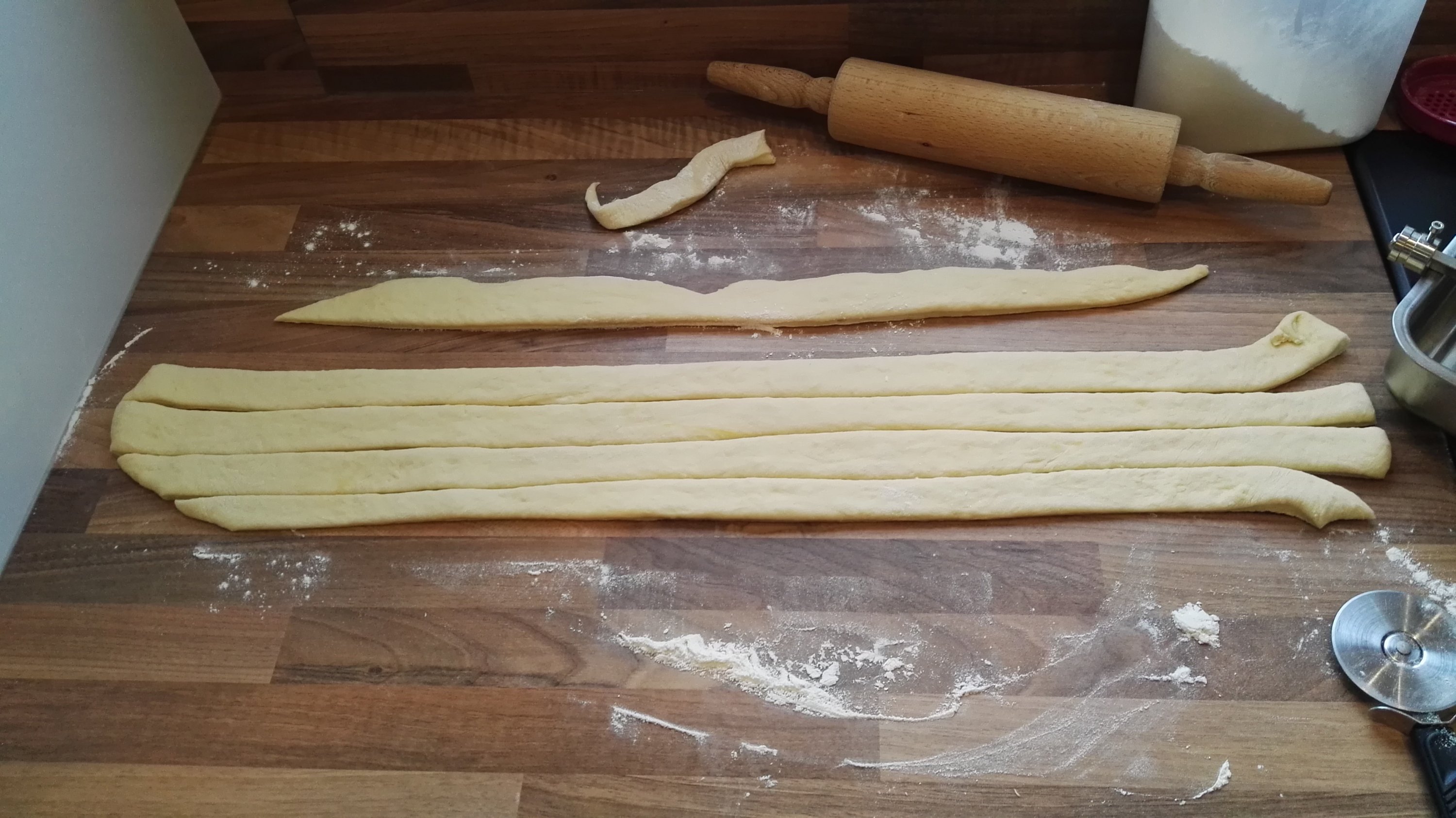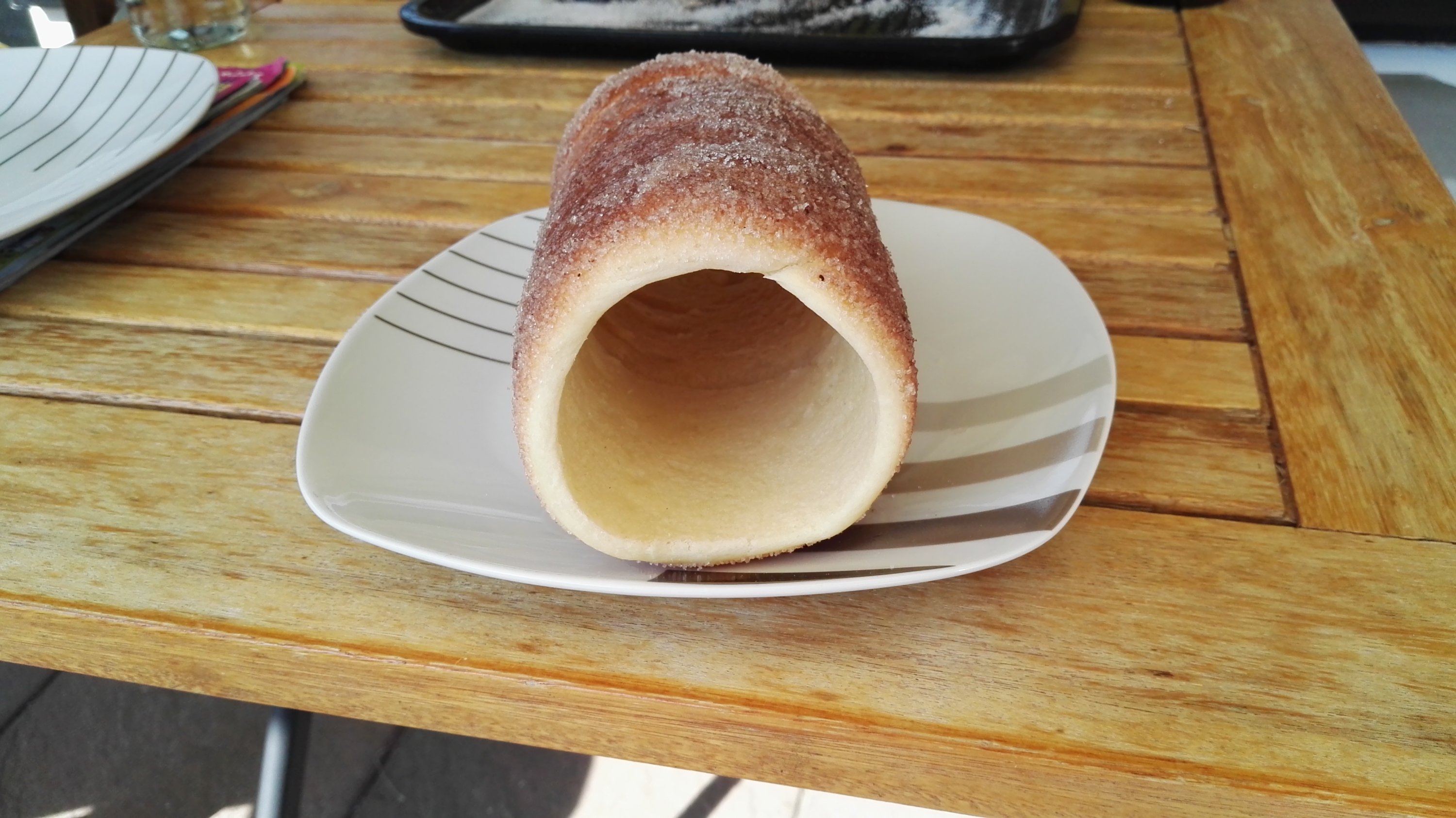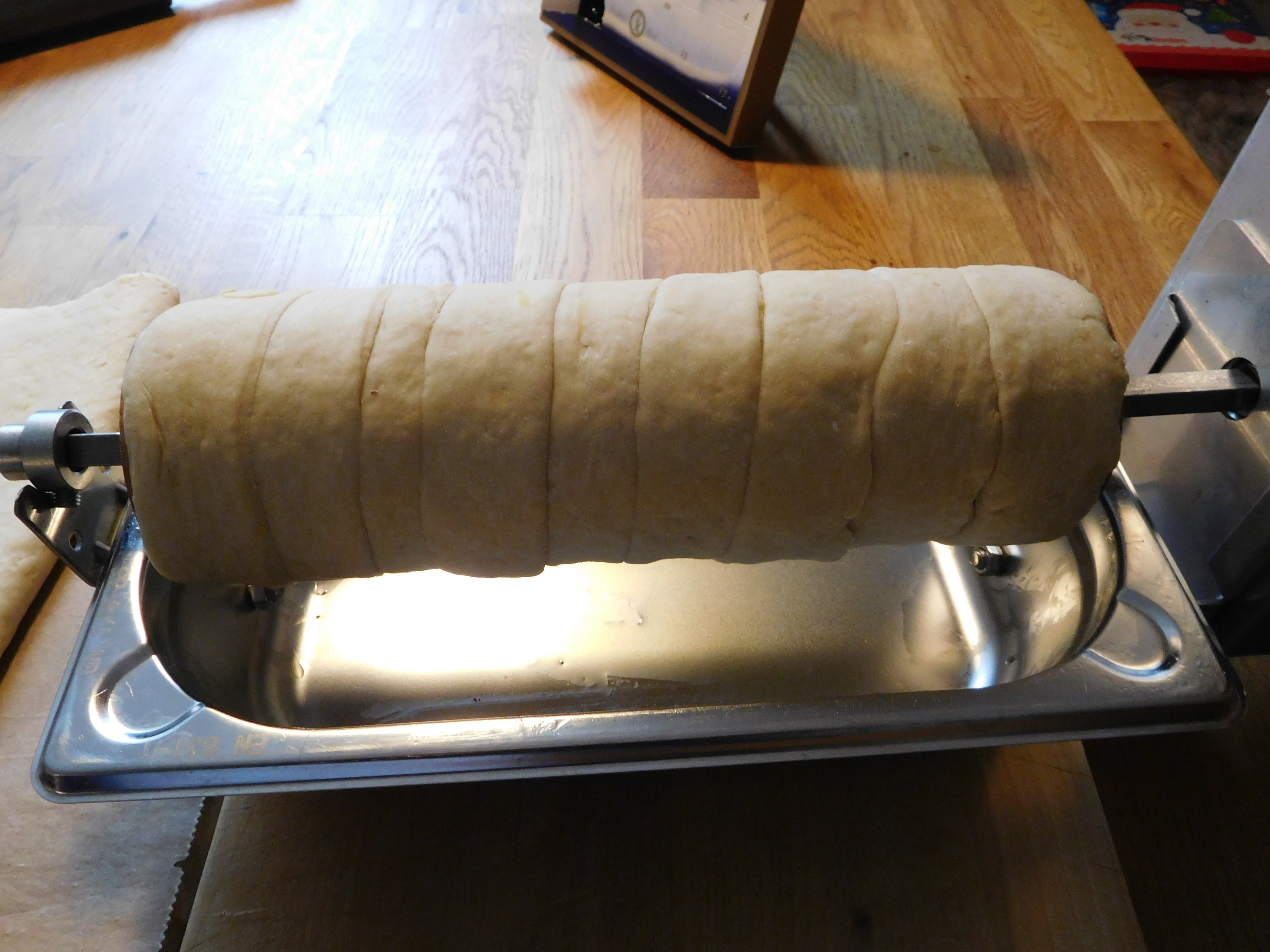 Das Ergebnis war genial und den kommerziellen Baumstriezeln ebenbürtig. Wir haben "nur" mit Zimt/Zucker garniert......oberlecker.