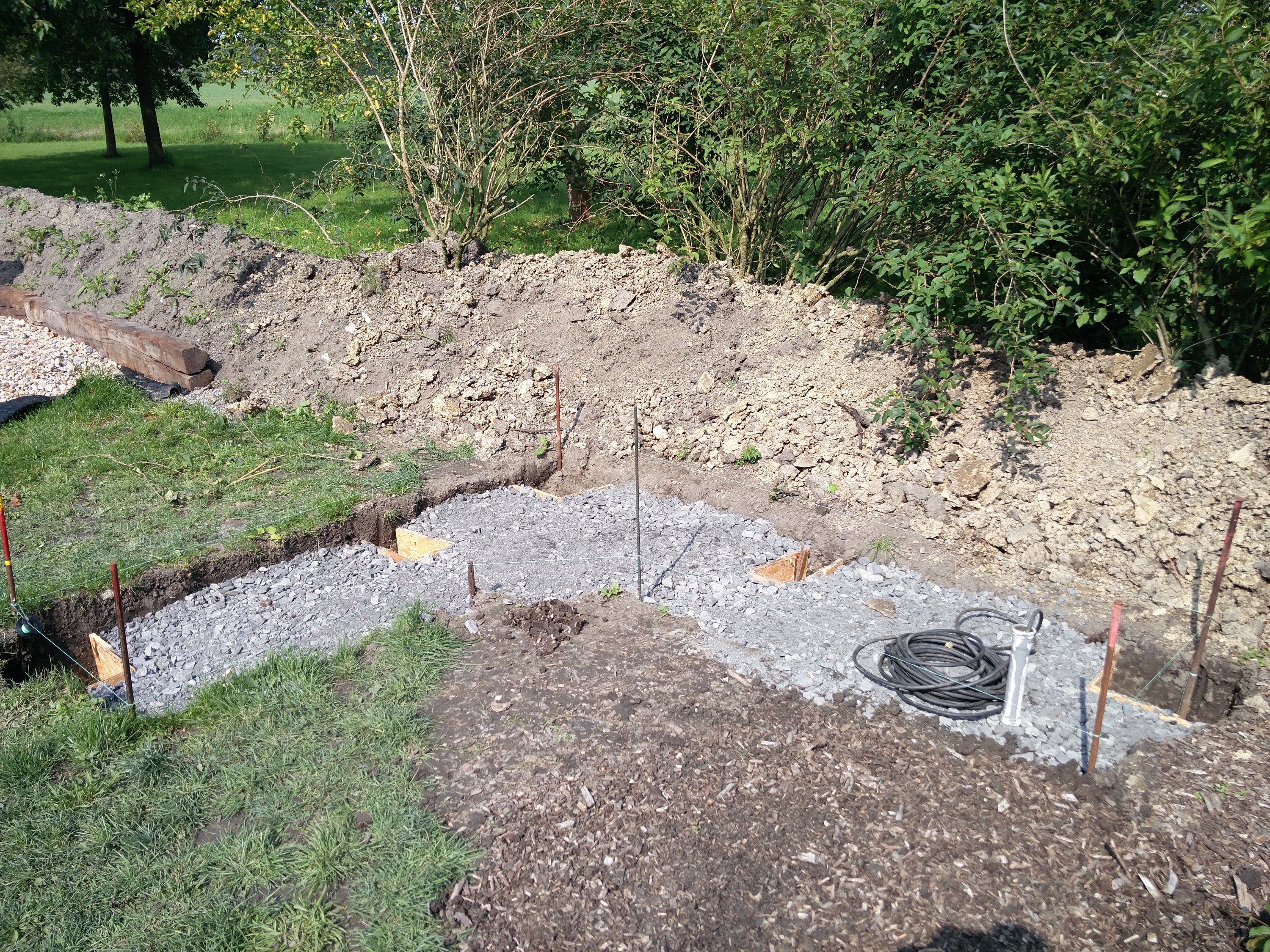 weiter ging es mit dem aushub für das fundament und dem erstellen des fundamentes inkl setzen der h-träger für das ständerwerk.