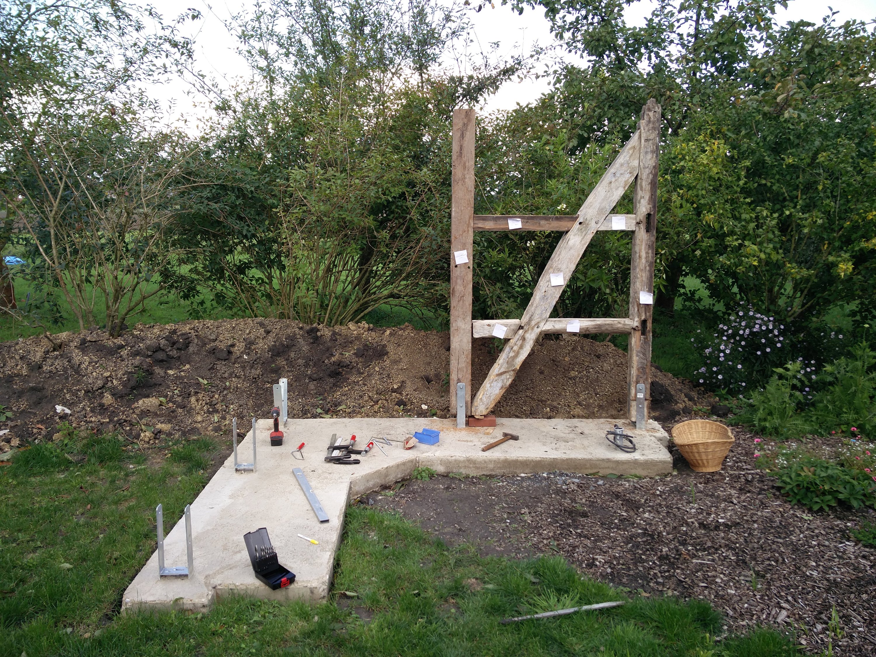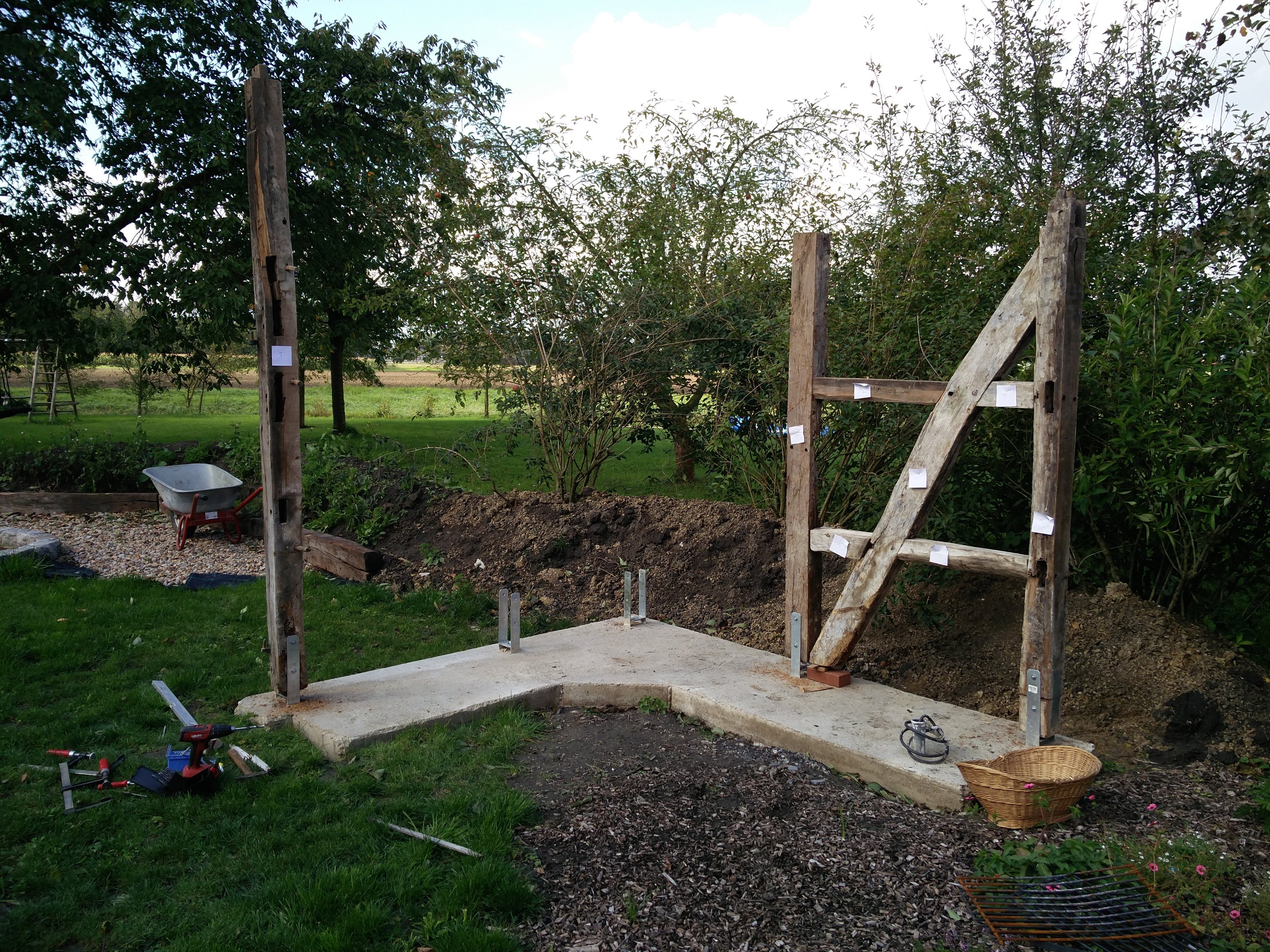 etwas gemauert und die nächsten balken stehen auch provisorisch