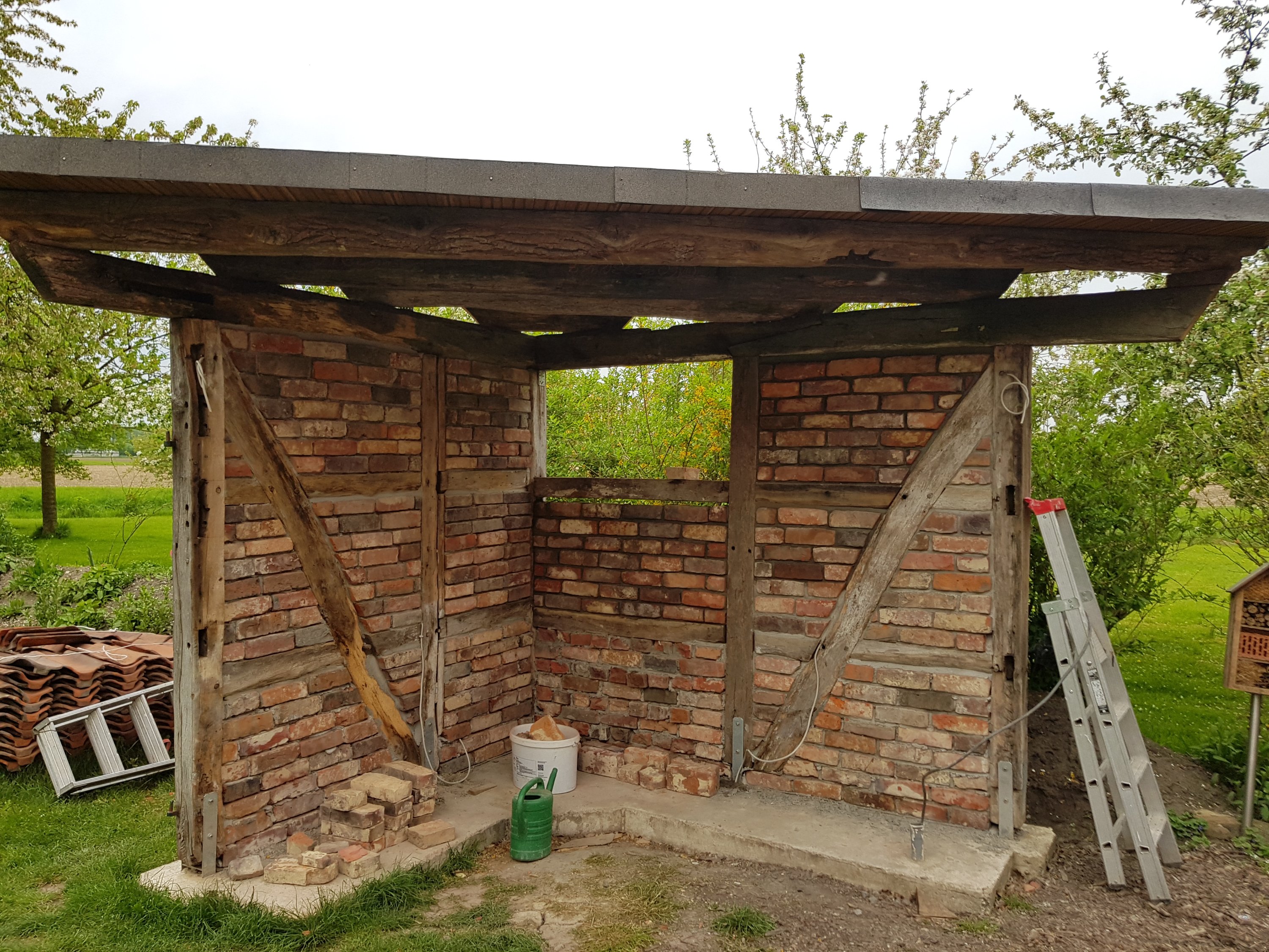 das ausmauern der gefache beginnt.
