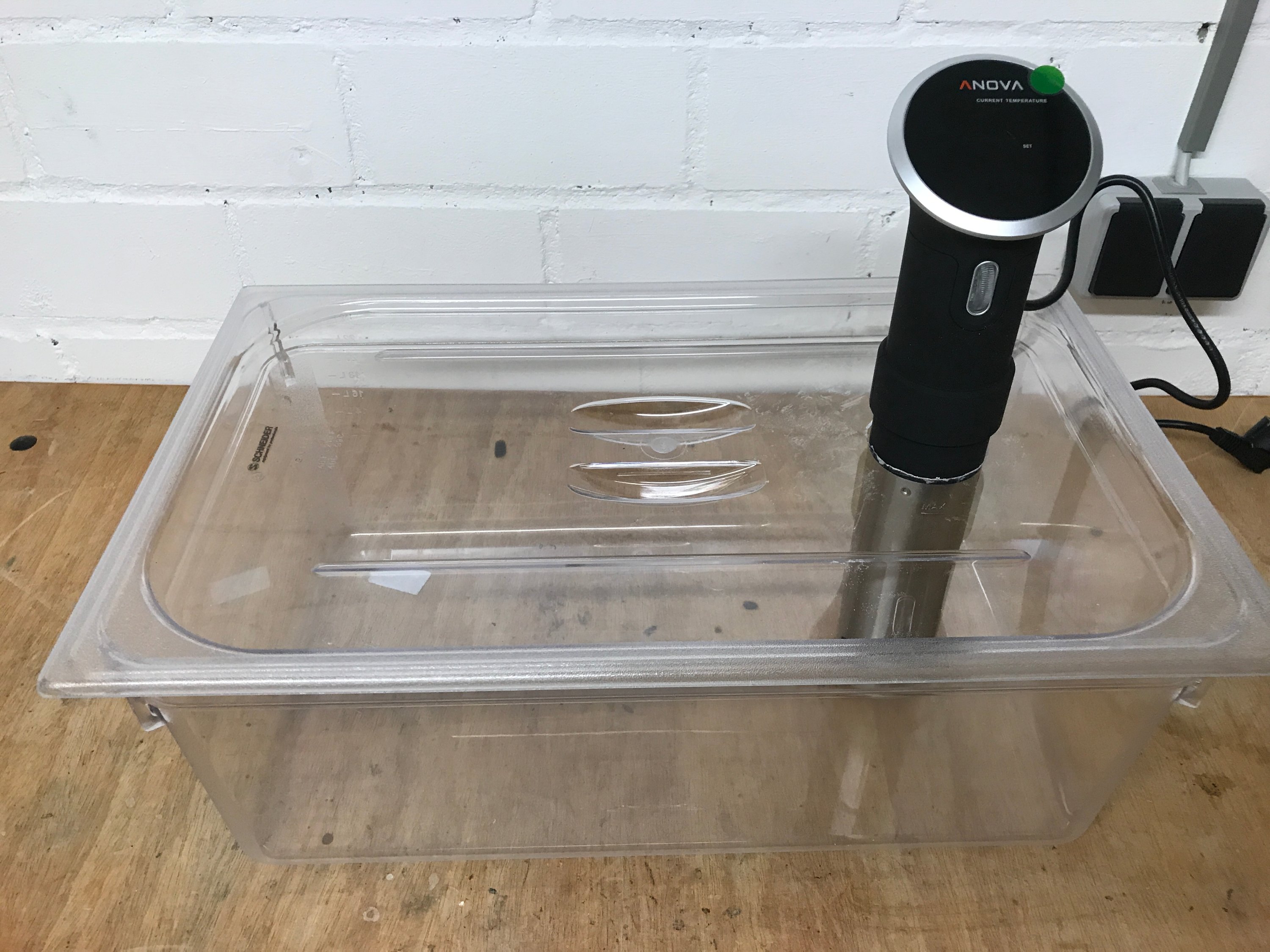 ich habe auch seit knapp 2 Jahren den Anova Stick im Einsatz .Einmal in einem 10 Liter Kochtopf oder wahlweise in einem großen Edelstahl GN Behälter. Funktioniert Prima.