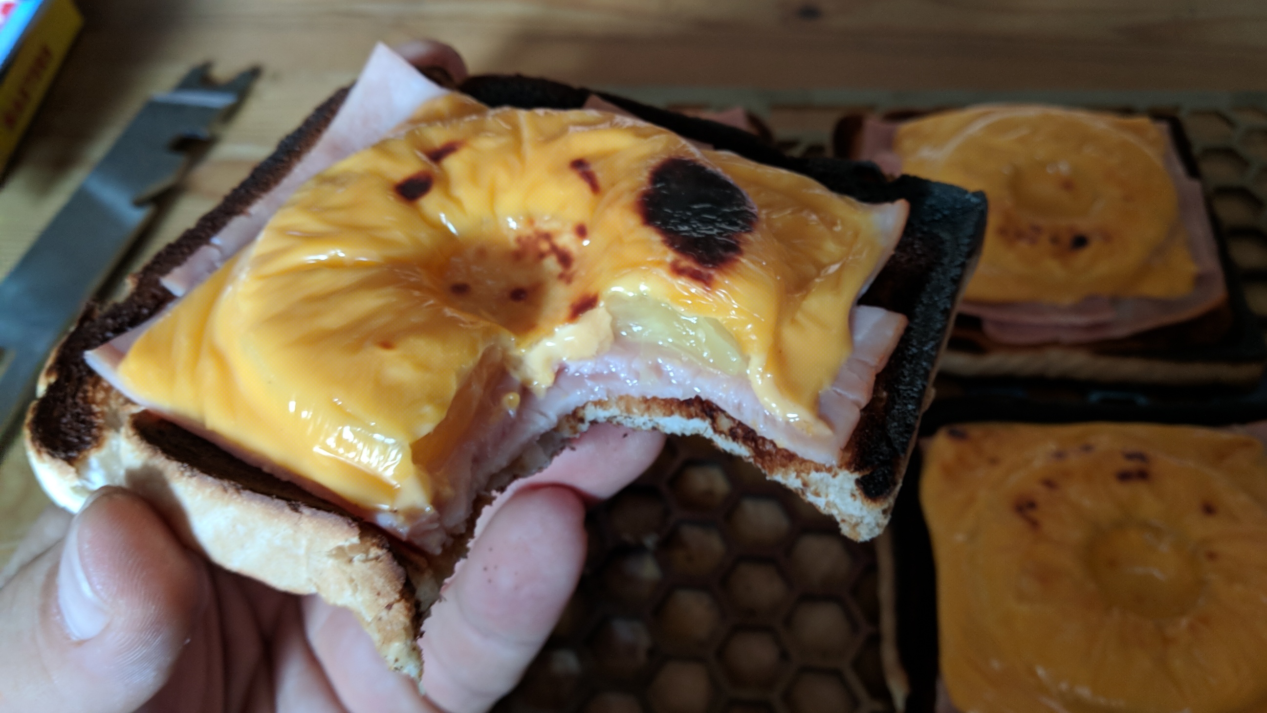 Hab den Fehler am Anfang auch gemacht. Mittlerweile drehe ich beide Brenner wie geschrieben ins untere Drittel, dann werden die Toasts auch nicht schwarz. Und der Käse wird auch sehr gut.
