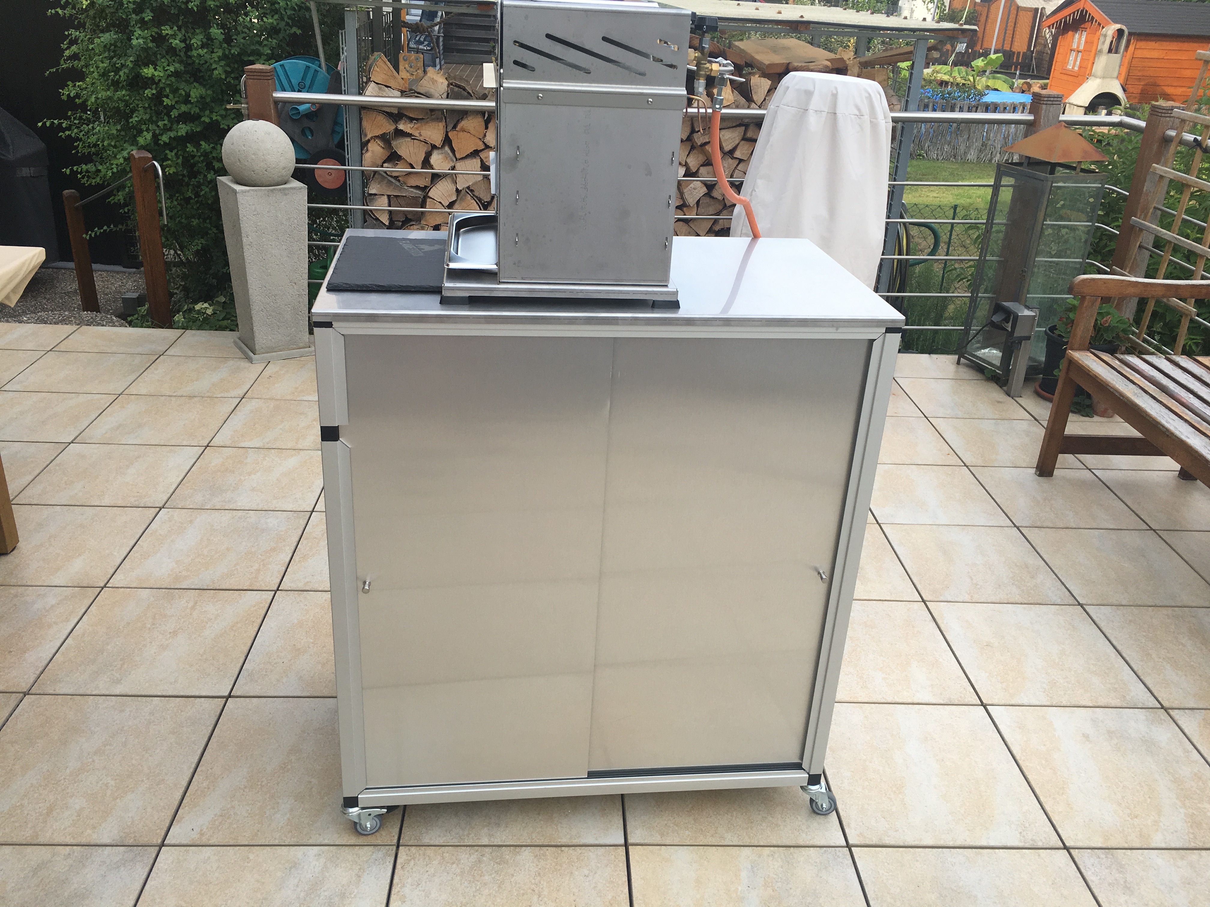 Nach dem ich nichts passendes oder bezahlbare gefunden habe und eine gewisse Vorstellung hatte was ich wollte musste ich mir meinen Grillwagen für meine Twin Flamestation selbst bauen. :tease: